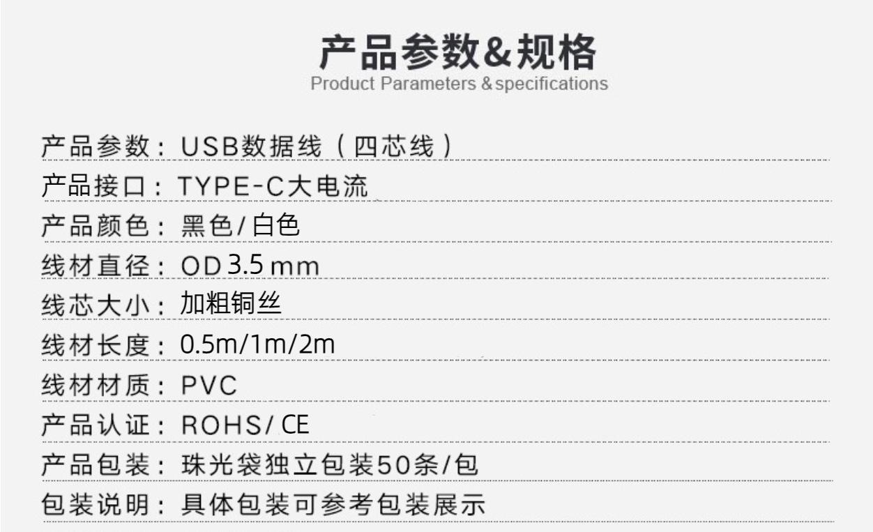 1m(2.4A), Type-c data cable 2m (2a)