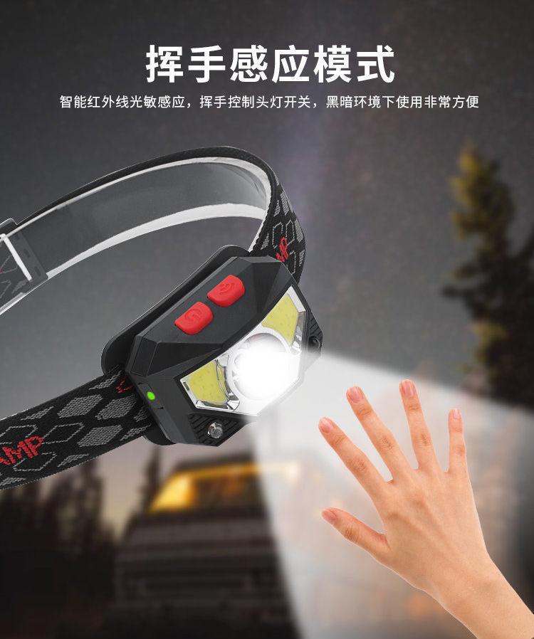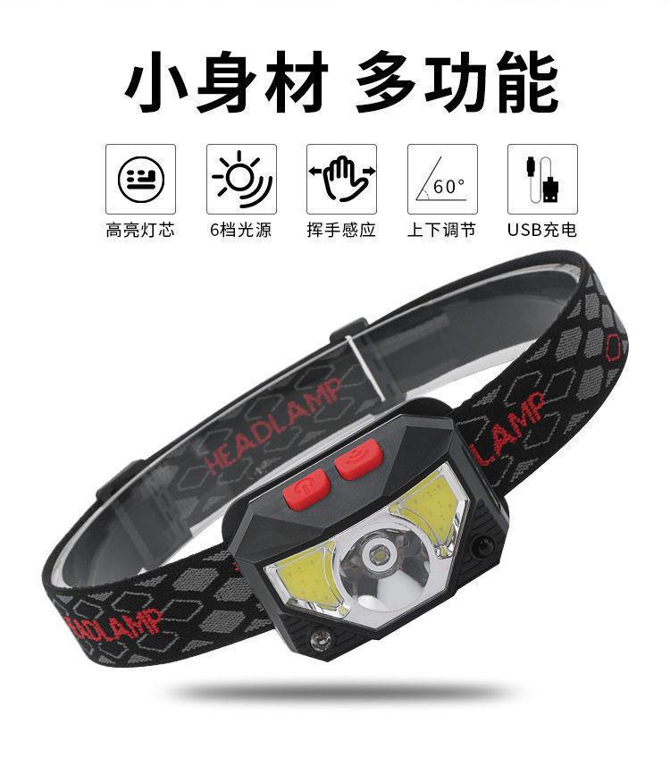 Compra Faro LED con Sensor Luz Fuerte Exterior Montado en la Cabeza Luz de Pesca Carga USB Linterna Mini Portátil Venta al por Mayor al por mayor en Joom.pro