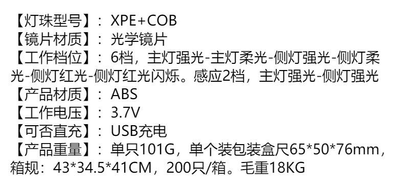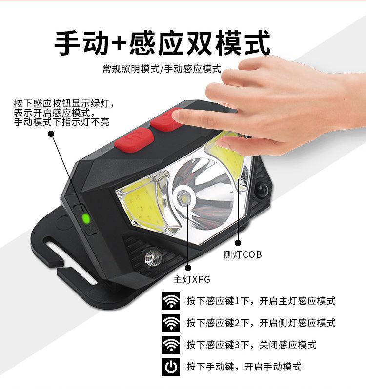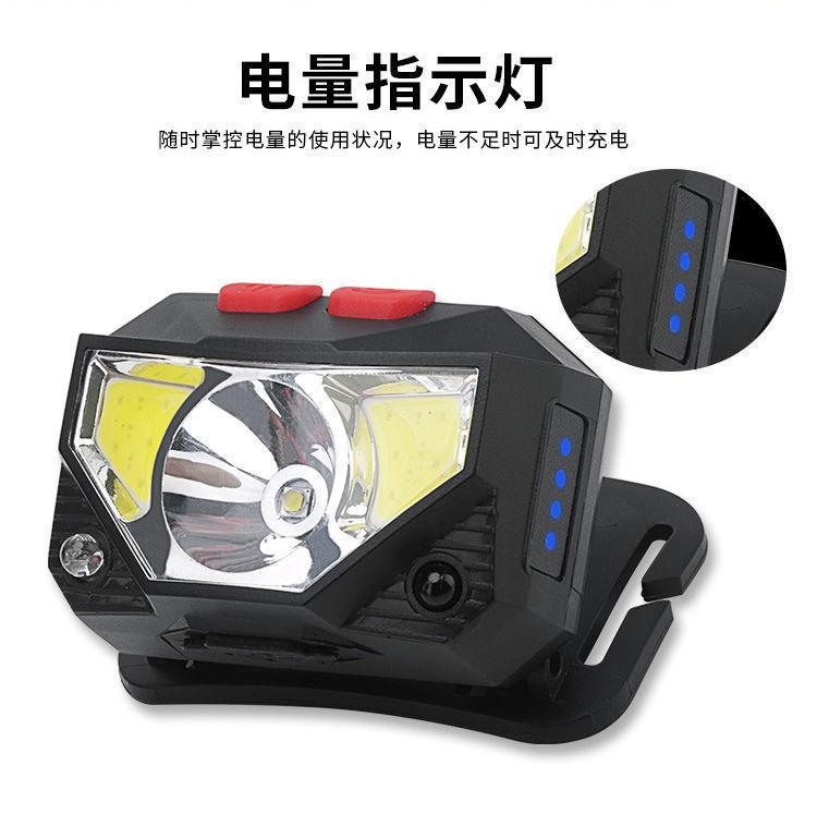 Faro LED con Sensor Luz Fuerte Exterior Montado en la Cabeza Luz de Pesca Carga USB Linterna Mini Portátil Venta al por Mayor