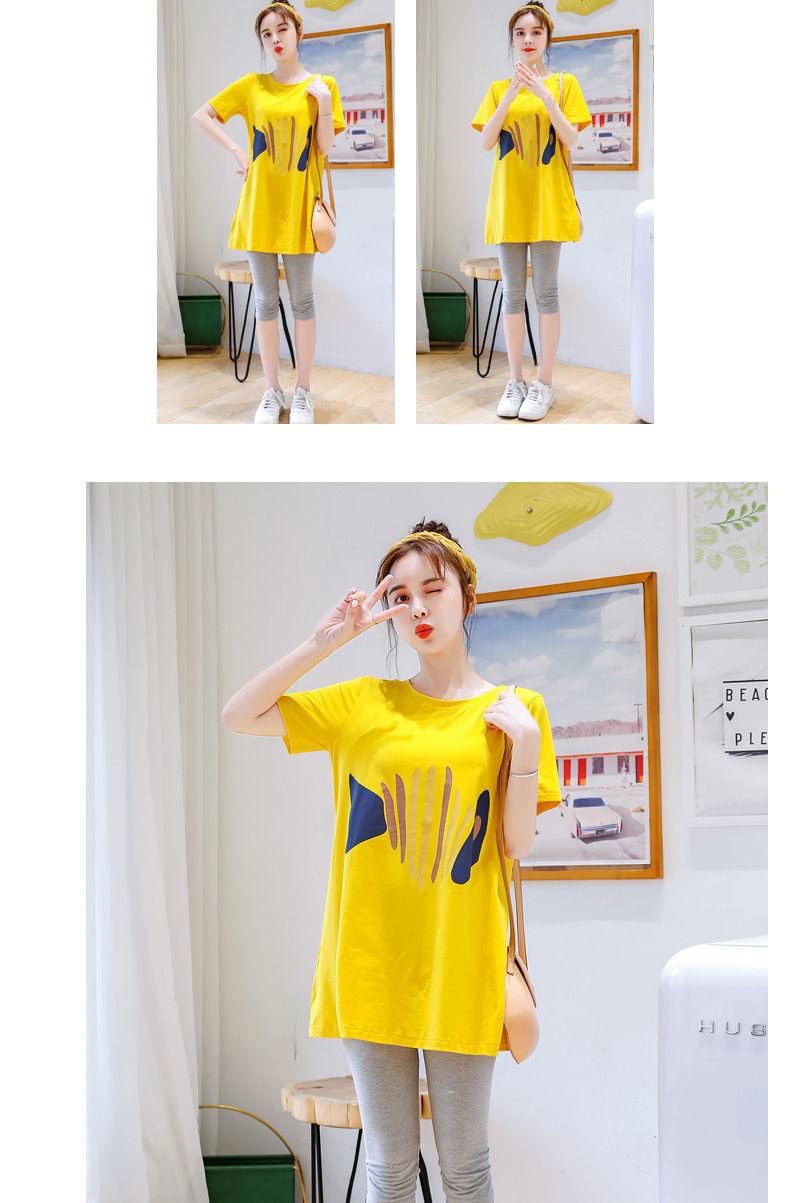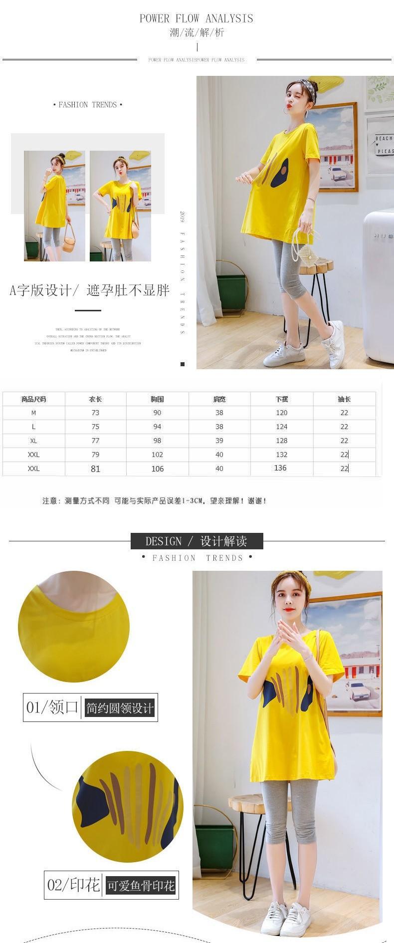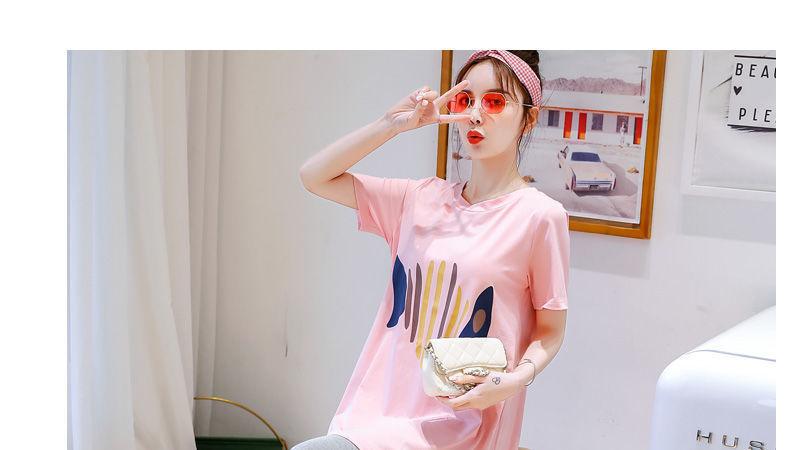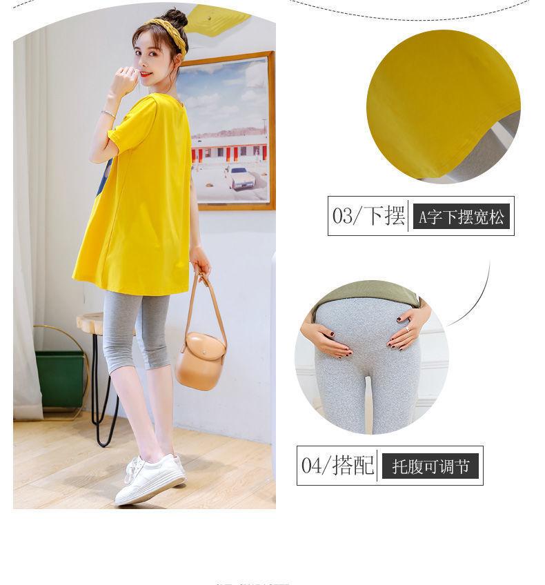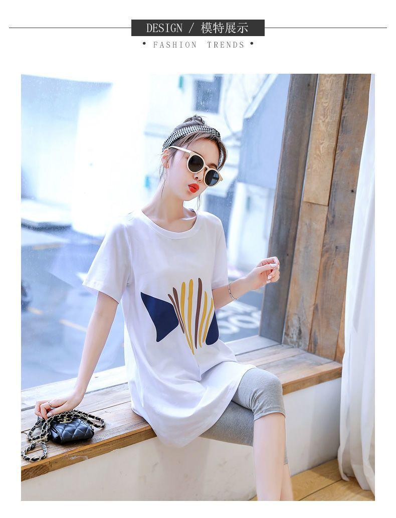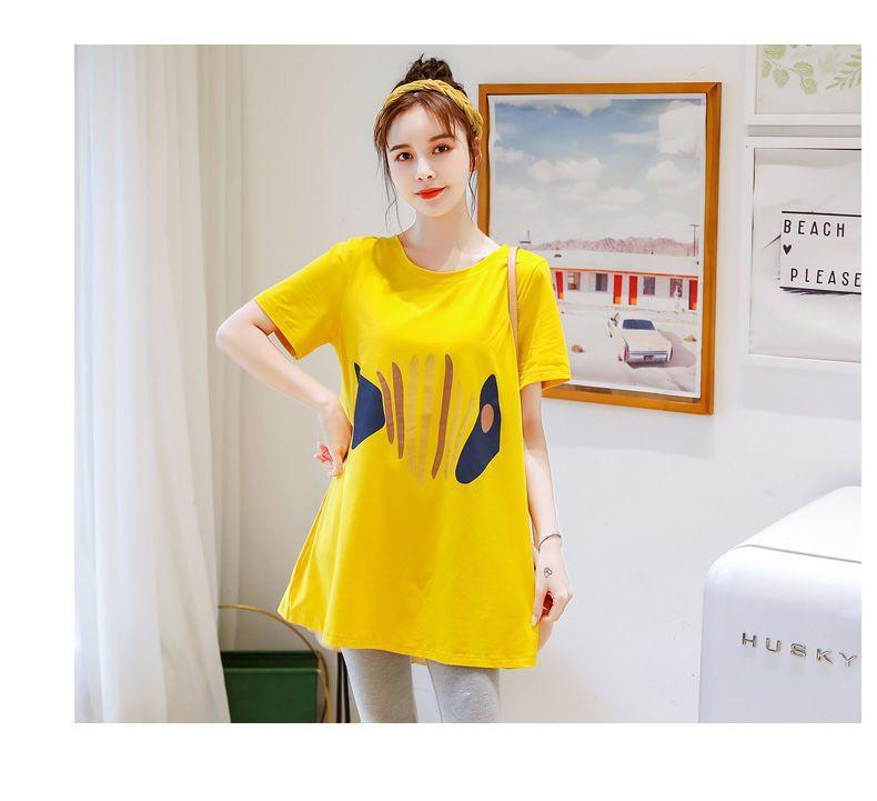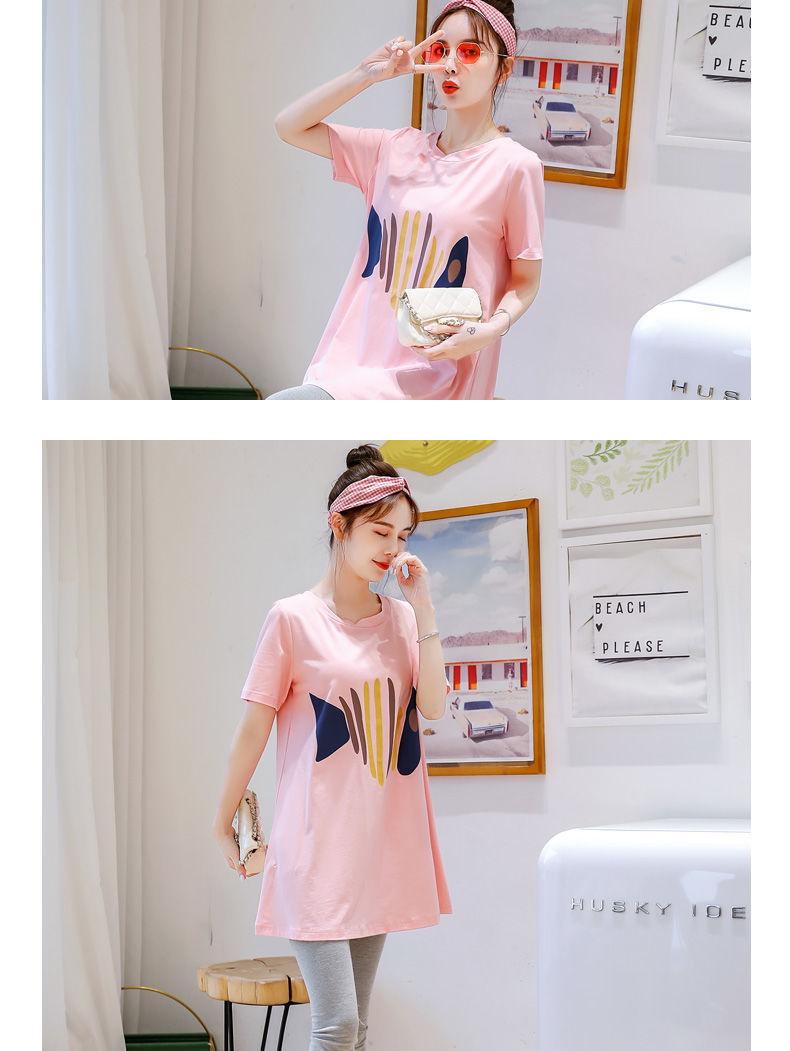 Camiseta de Maternidad Primavera Nueva Largo Medio Moda Estilo Coreano Suelta Manga Corta Top Camisa Base Vestido de Verano Trendy