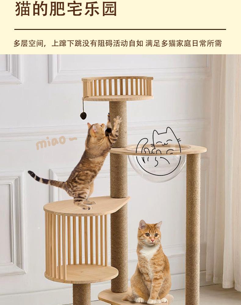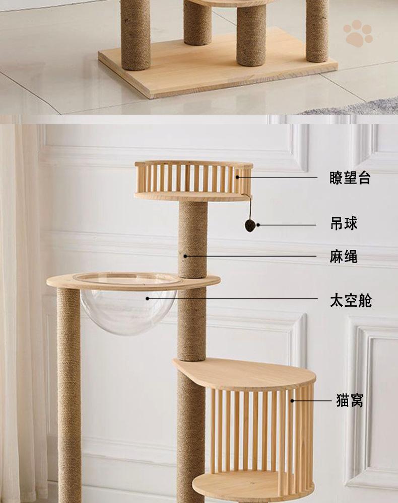 La escalada integrada de madera maciza no ocupa un marco de escalada para gatos minimalista, cápsula espacial, columna multifuncional para gatos, fabricante de gatos