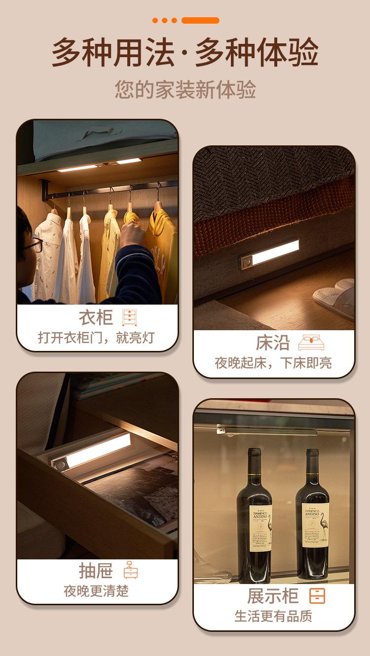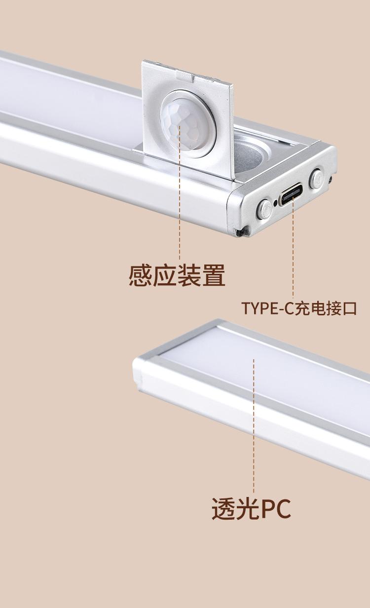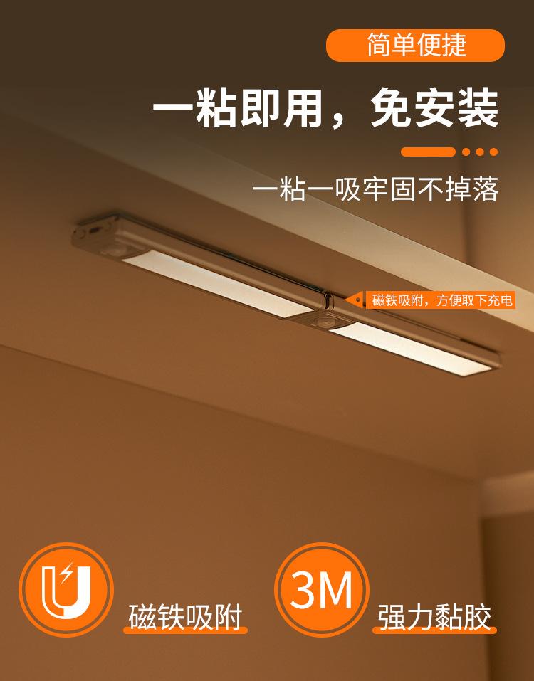 Luz LED con Sensor de Movimiento Corporal Humano, Luz Magnética Autoadhesiva para Armario, Tira de Luz Recargable para Gabinete de Vino, Luz Magnética, Regulable