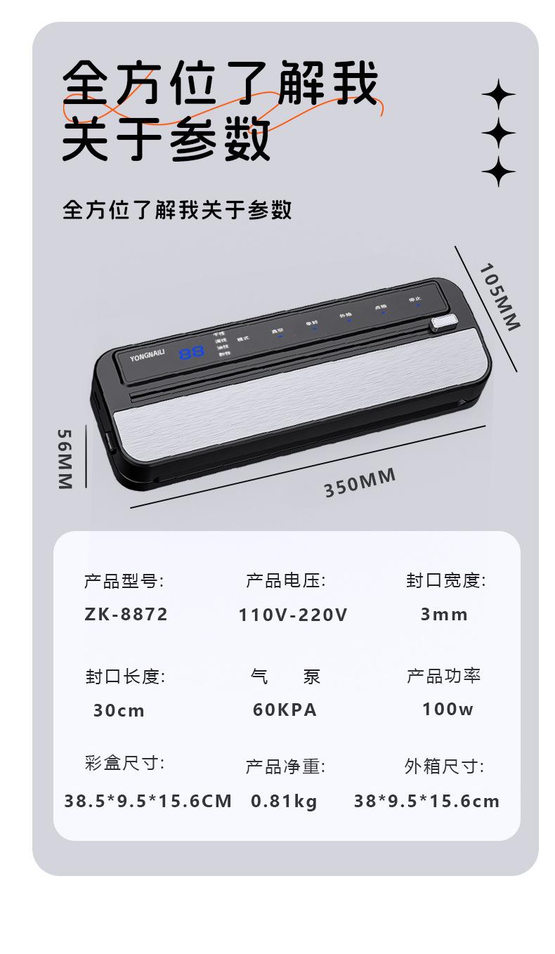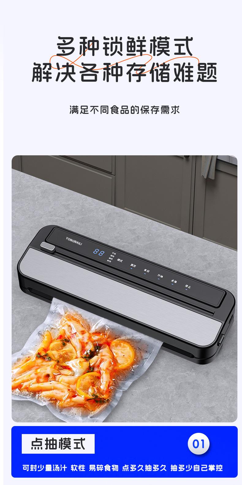 Máquina de sellado al vacío, máquina de envasado al vacío de alimentos, pequeña máquina de sellado automático de plástico para el hogar, artefacto de conservación comercial