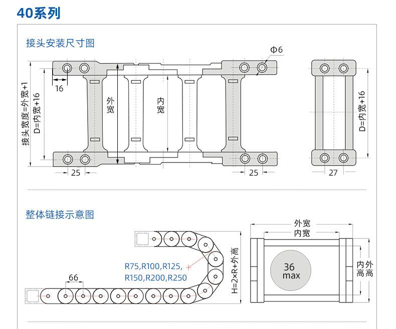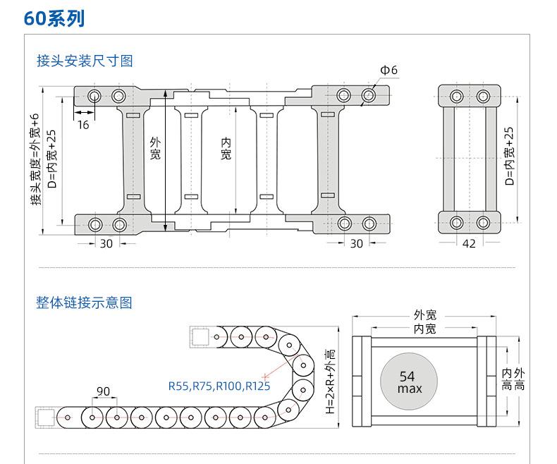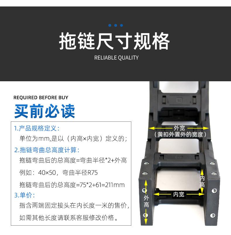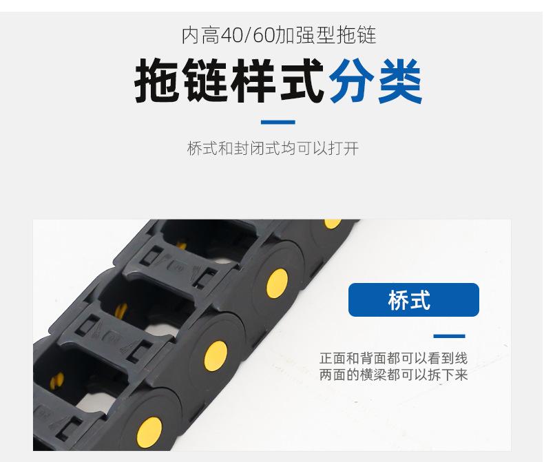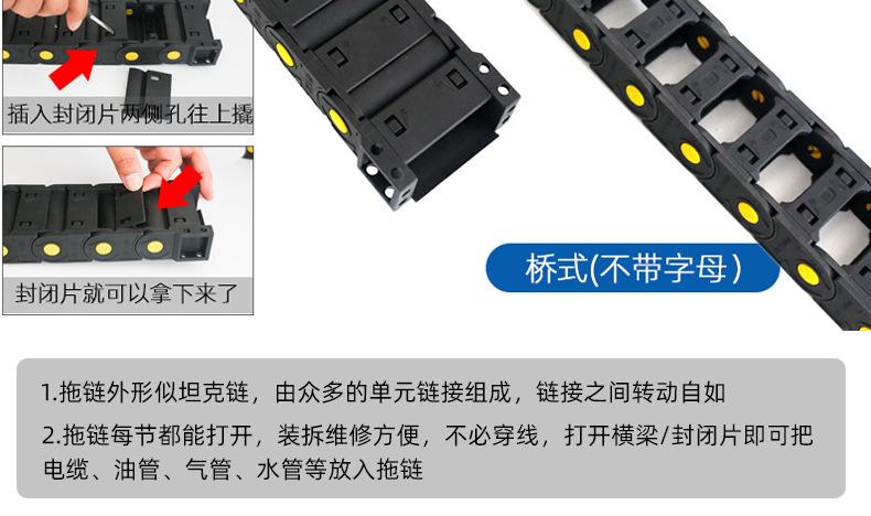 Cadena de arrastre de nailon para tanques, serie 4060, cadena de arrastre de nailon de plástico de ingeniería, canaleta para puente completamente cerrada