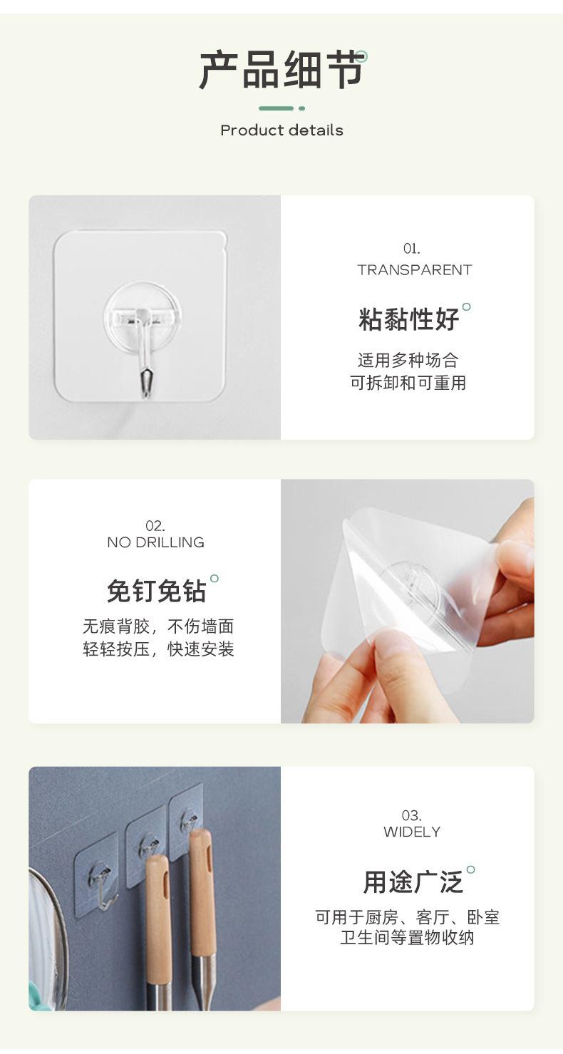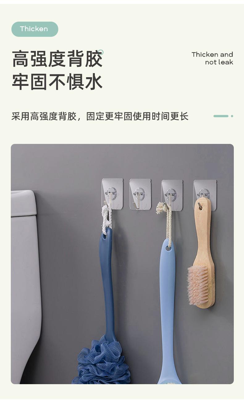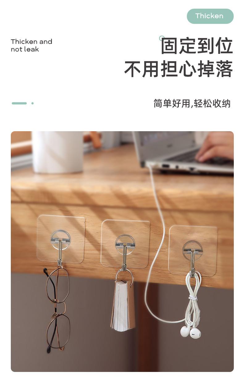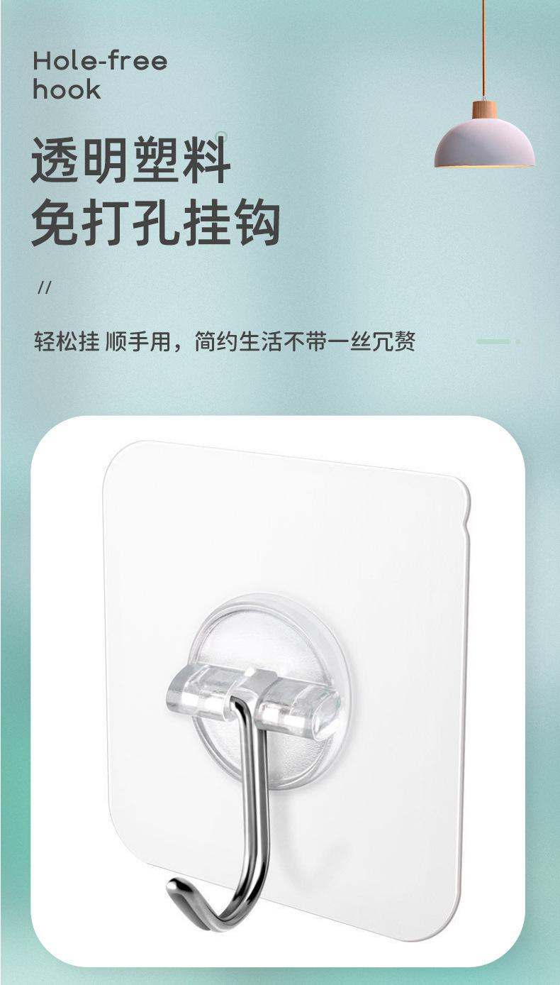 Gancho sin perforaciones, sin taladro, gancho adhesivo fuerte, gancho fuerte de acero inoxidable, gancho adhesivo transparente sin rastro, gancho de pared para baño y sala de estar