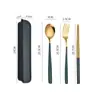 Set de Cubiertos Portátil de Acero Inoxidable Espeso Tenedor Cuchara Palillos Set de Tres Piezas Estilo Coreano Caja de Regalo para Almacenamiento de Estudiante Oficina