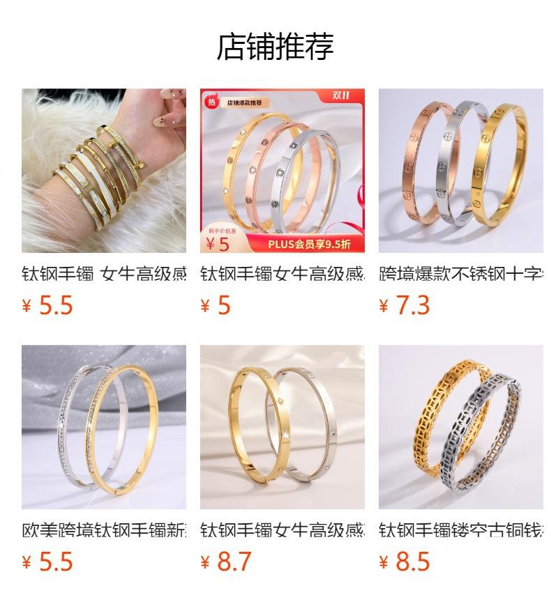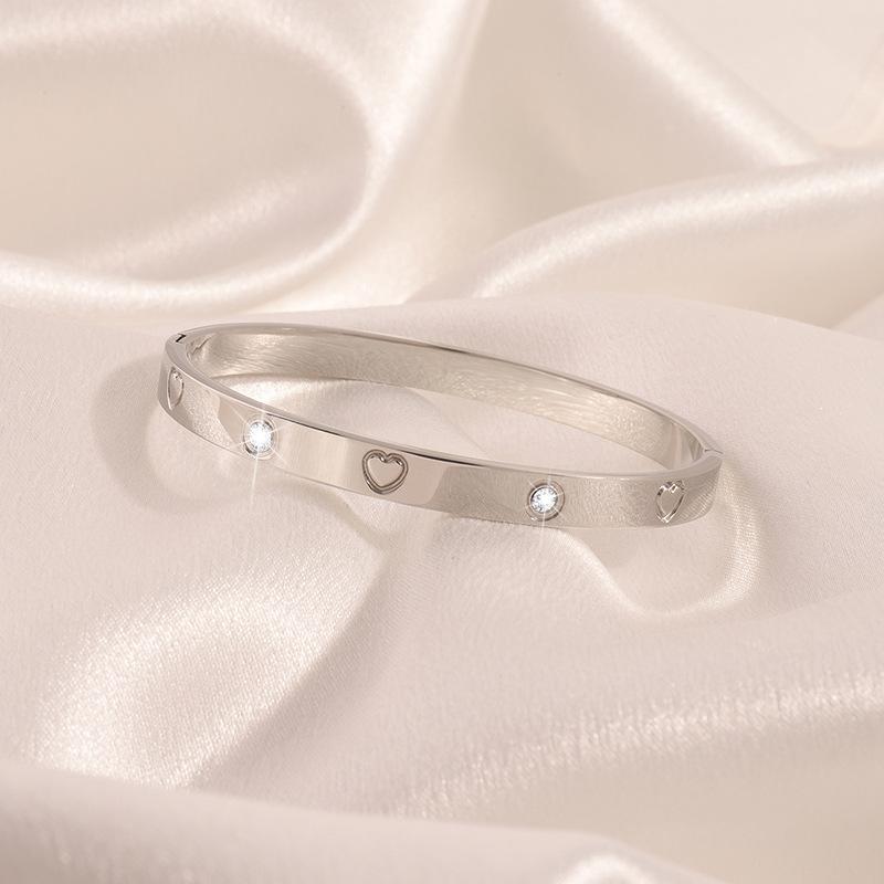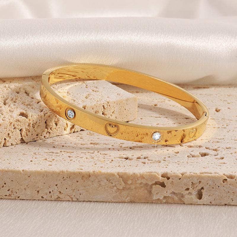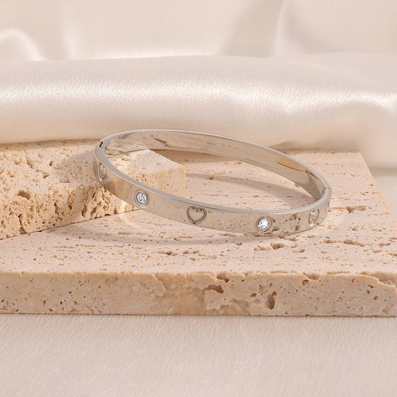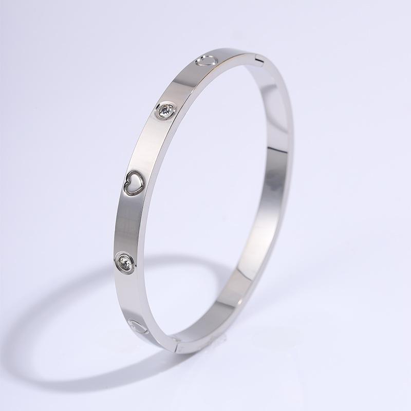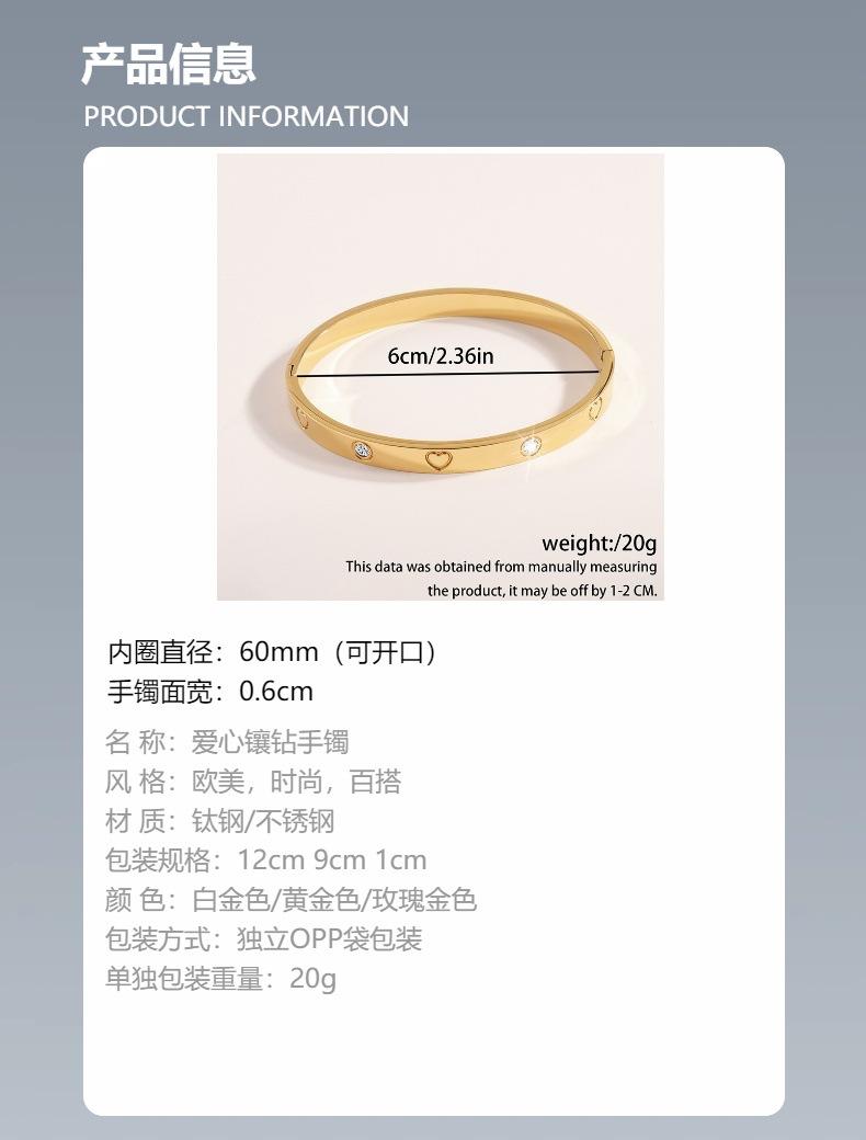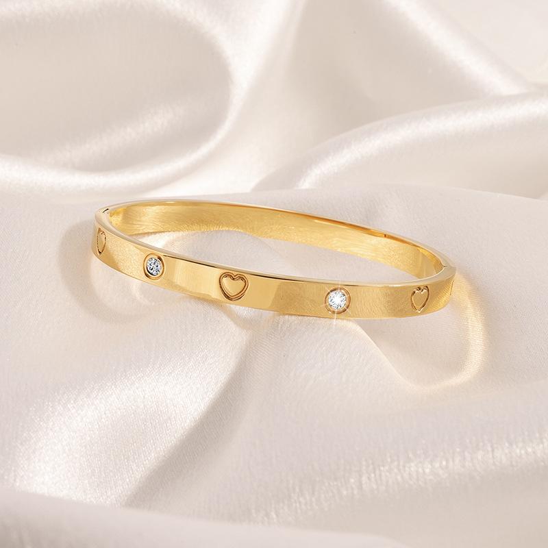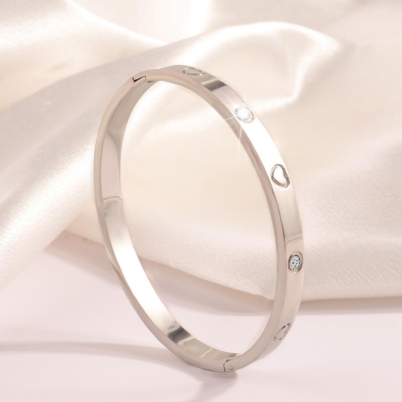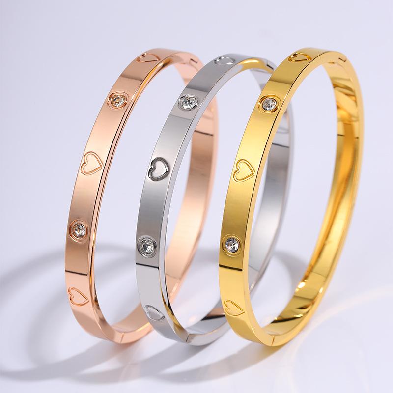 Pulsera Popular Transfronteriza de Acero de Titanio para Mujer, Pulsera de Acero Inoxidable Chapada en Oro con Diamante de Amor de Alta Gama, Joyería Europea y Americana que No se Desvanece
