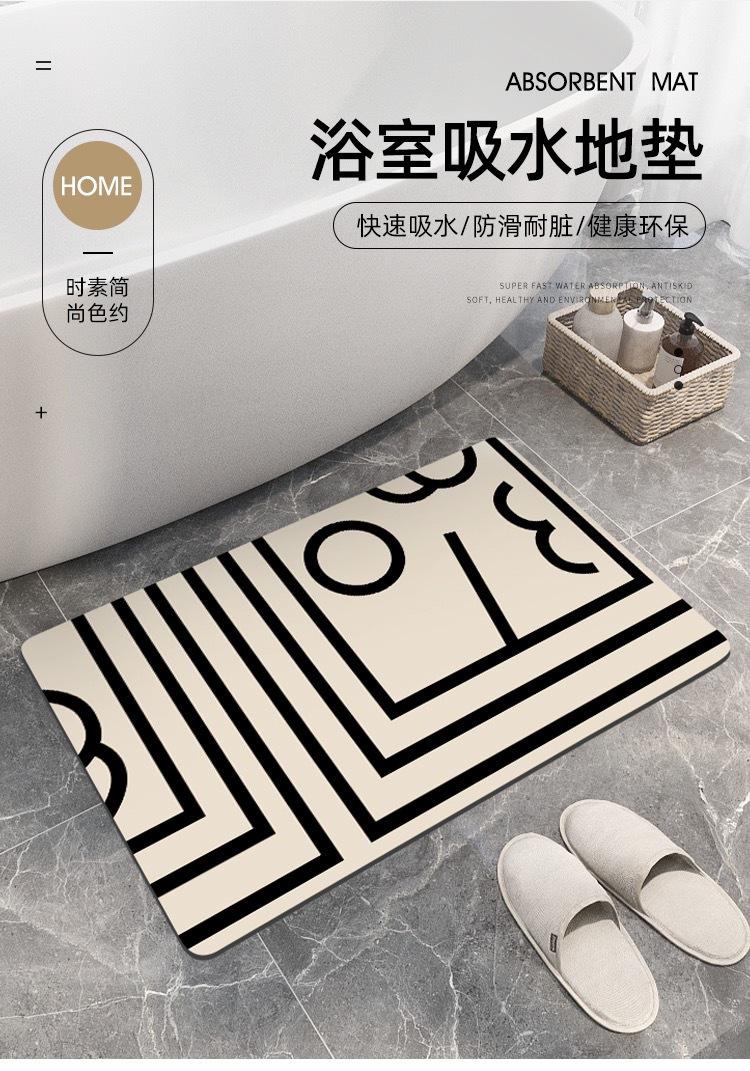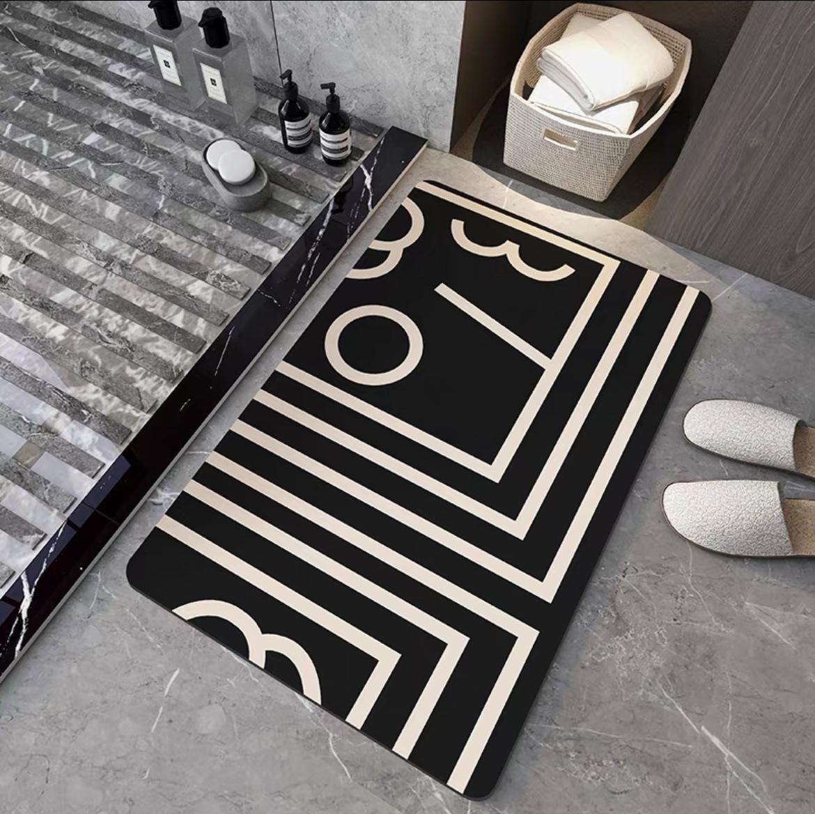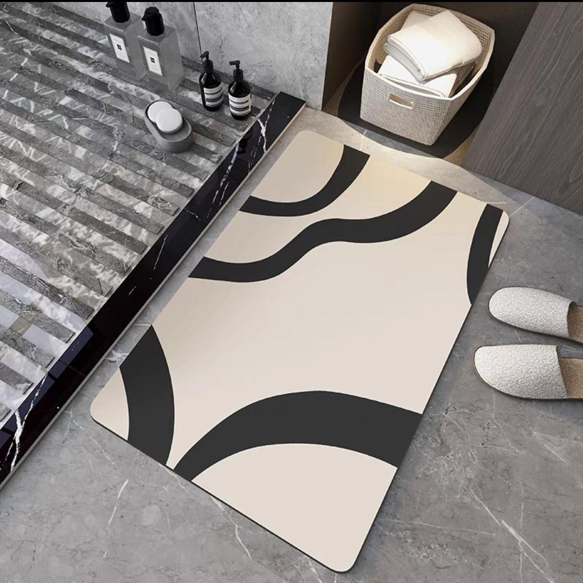 Alfombrilla de baño absorbente suave con diseño geométrico simple, antideslizante y de secado rápido