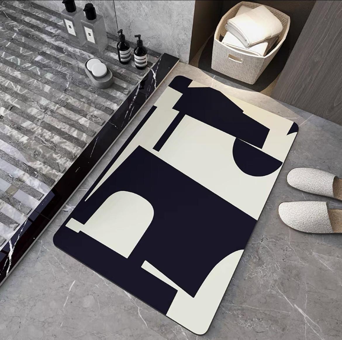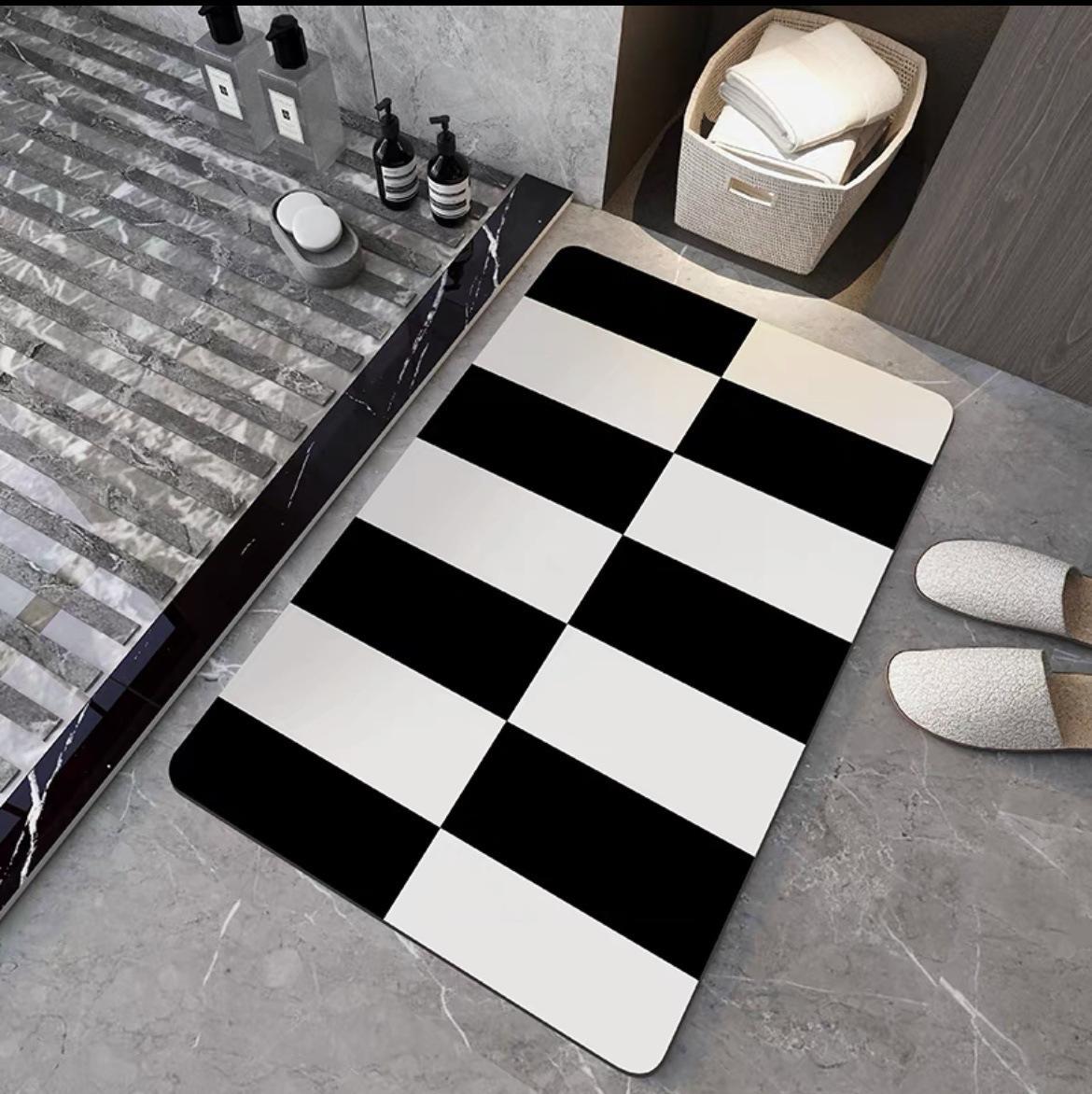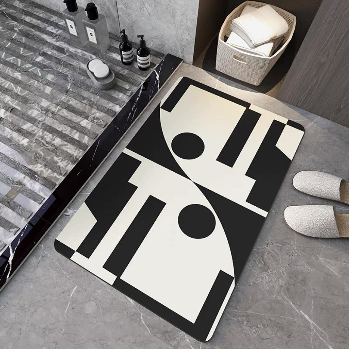 Alfombrilla de baño absorbente suave con diseño geométrico simple, antideslizante y de secado rápido