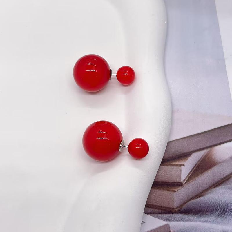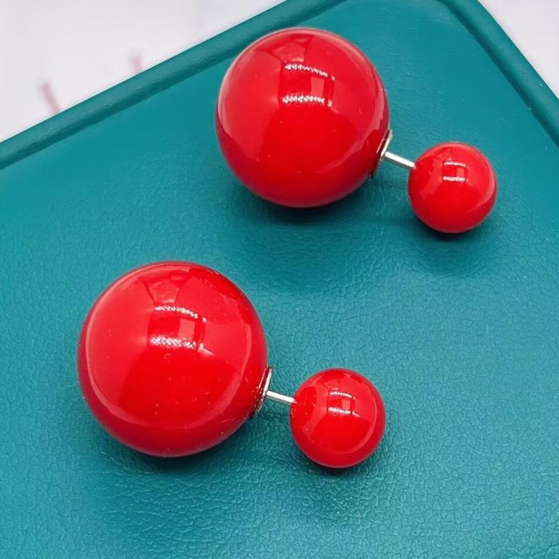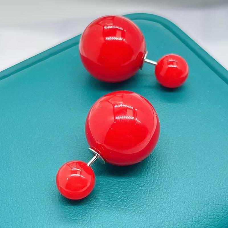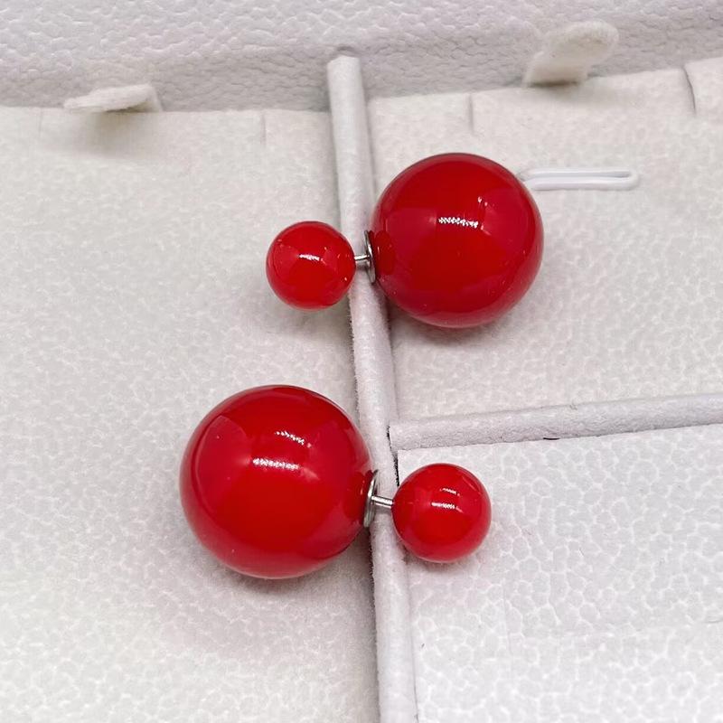 Pendientes rojos de doble cara para usar, moda, tamaño popular, pendientes de perlas de doble cara, pendientes vintage, fabricantes para venta al por mayor