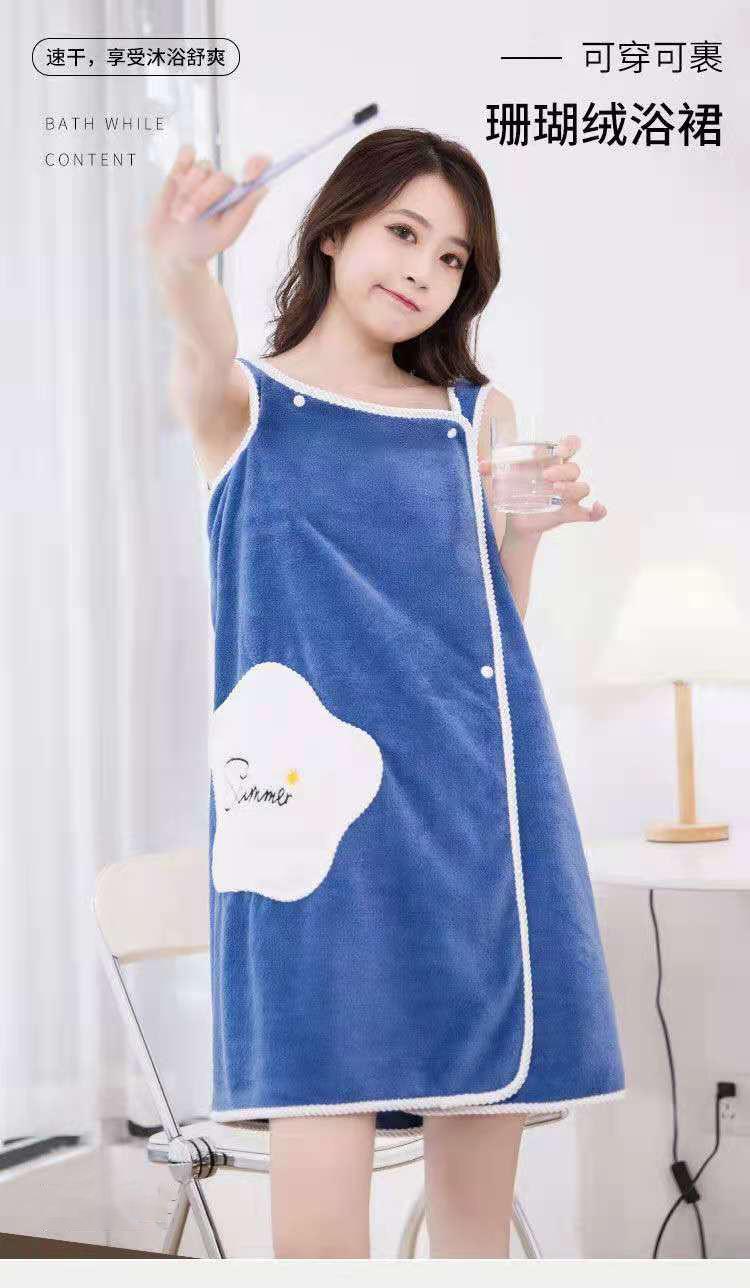 Toalla de baño portátil Espesada y absorbente Falda de baño Bata de casa de alta densidad para adulto femenino Falda de baño suave de vellón coral