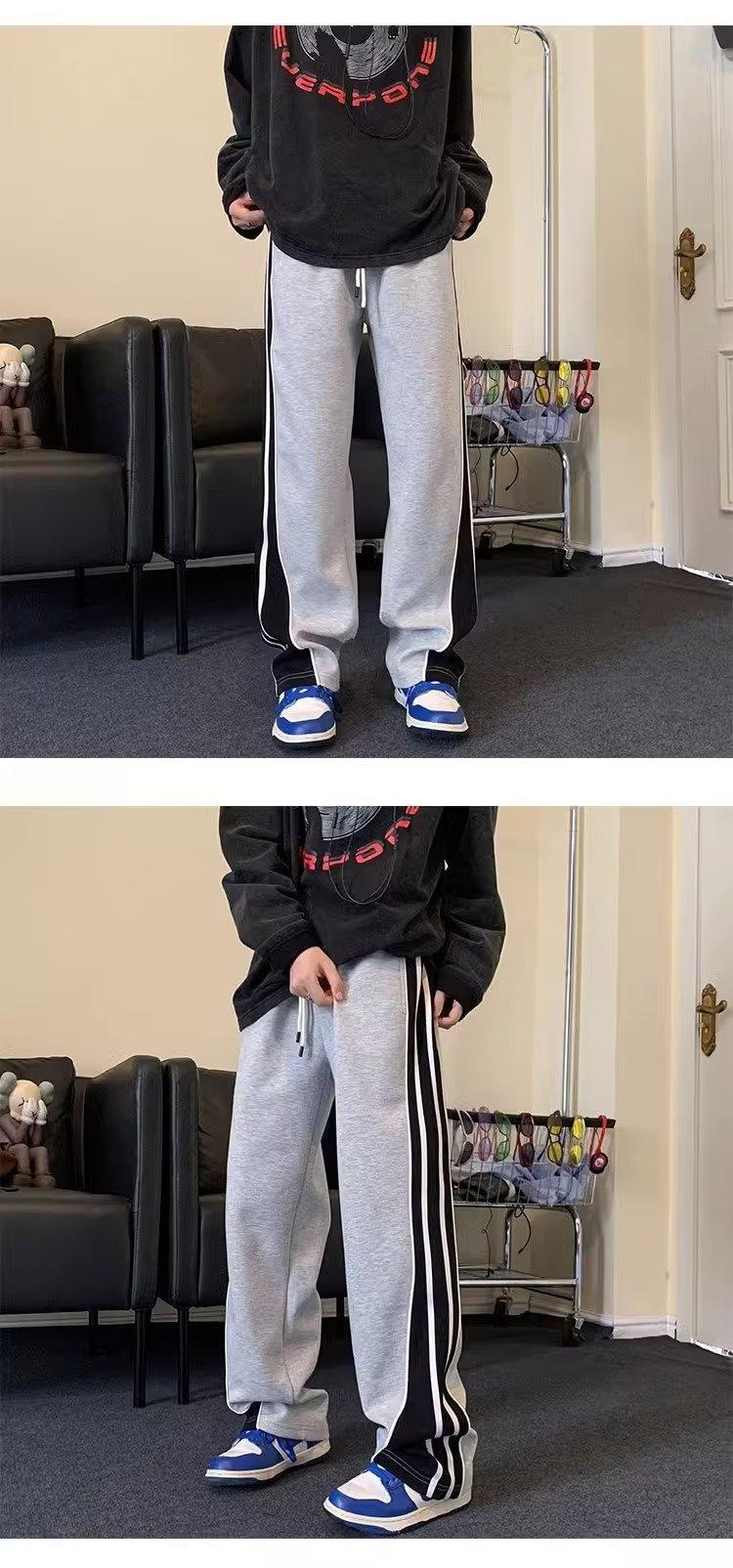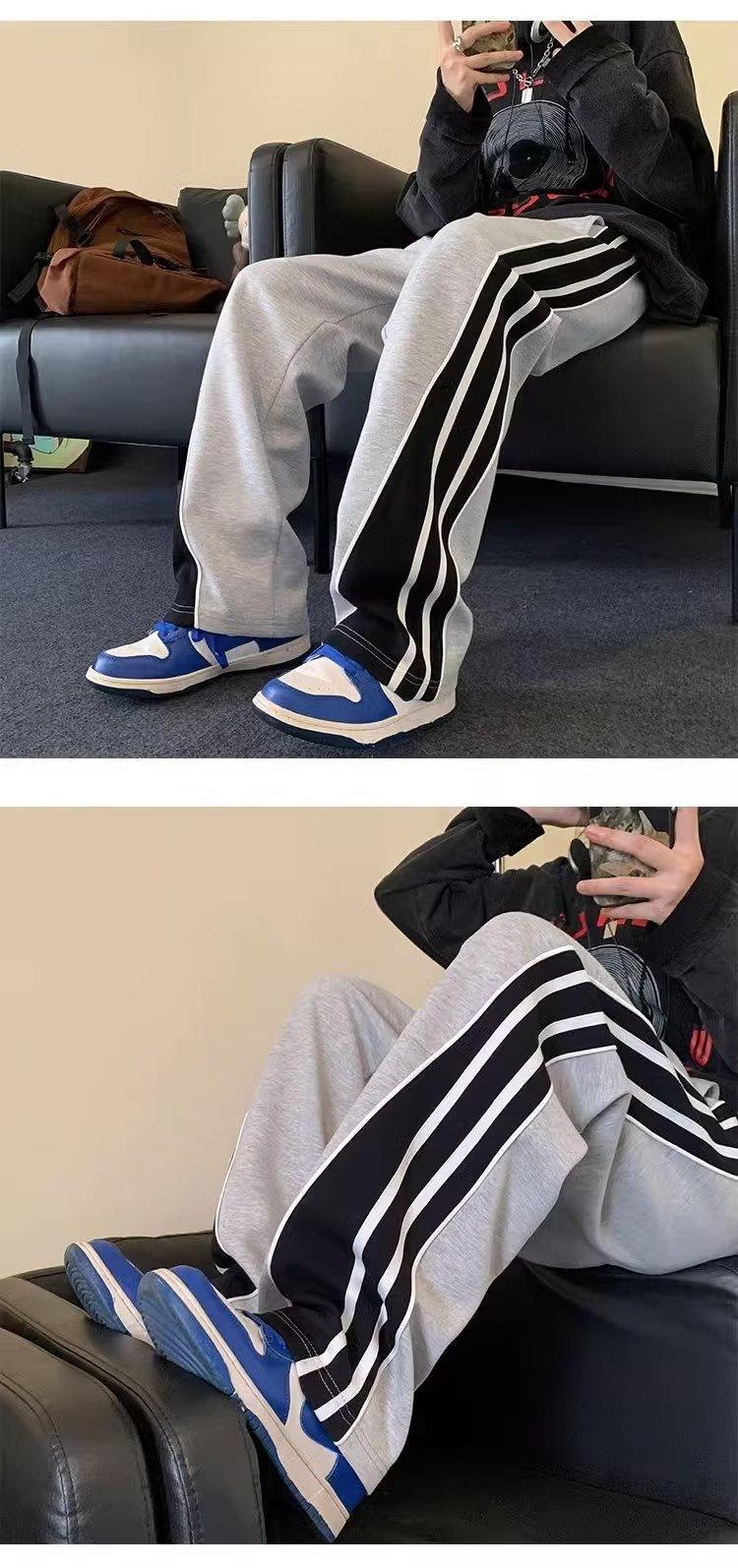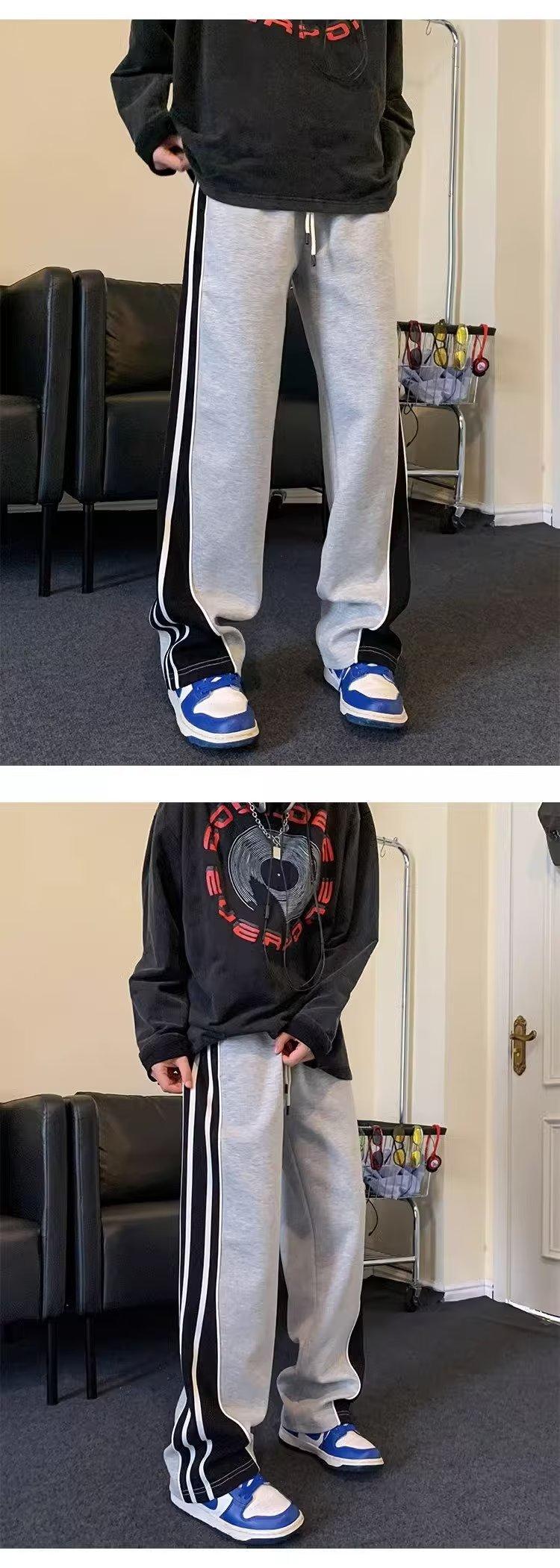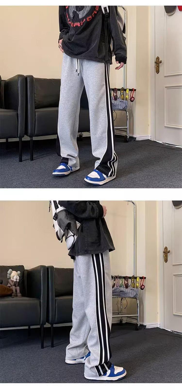 Pantalones deportivos de otoño para hombre, estilo americano, de marca High Street, con costuras a rayas, holgados, rectos, de pierna ancha e informales