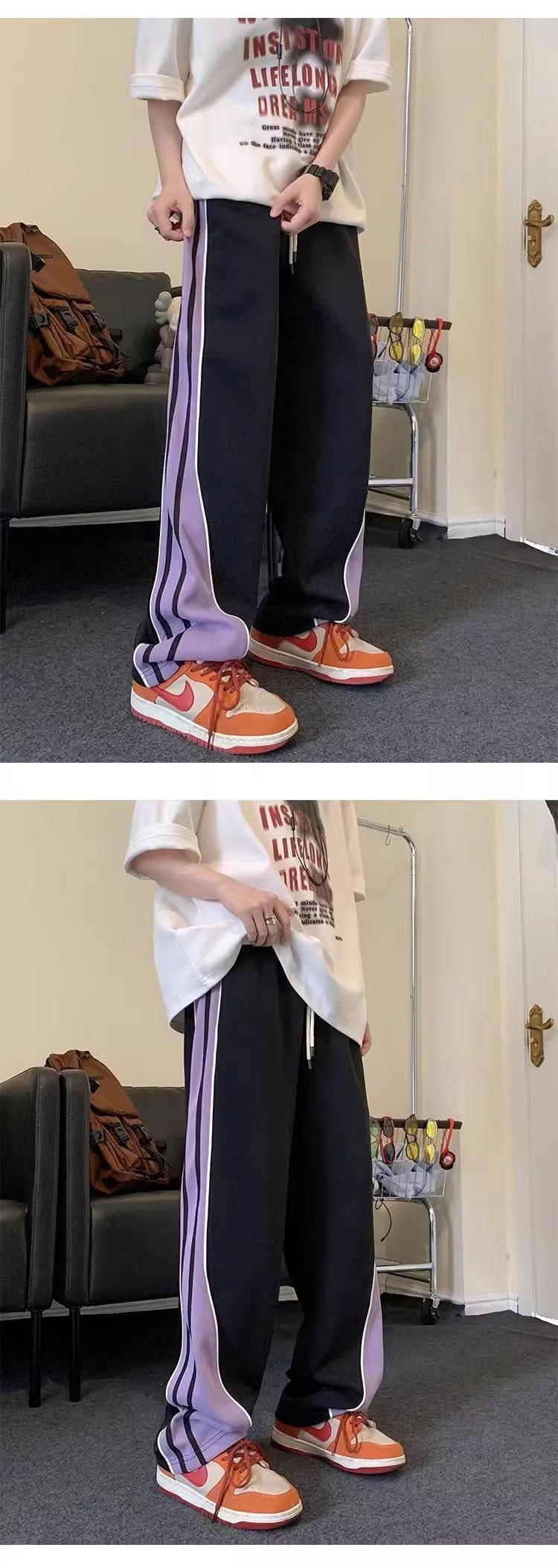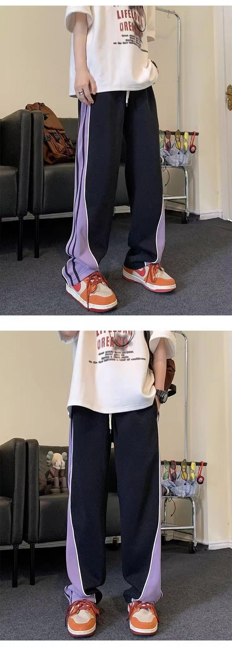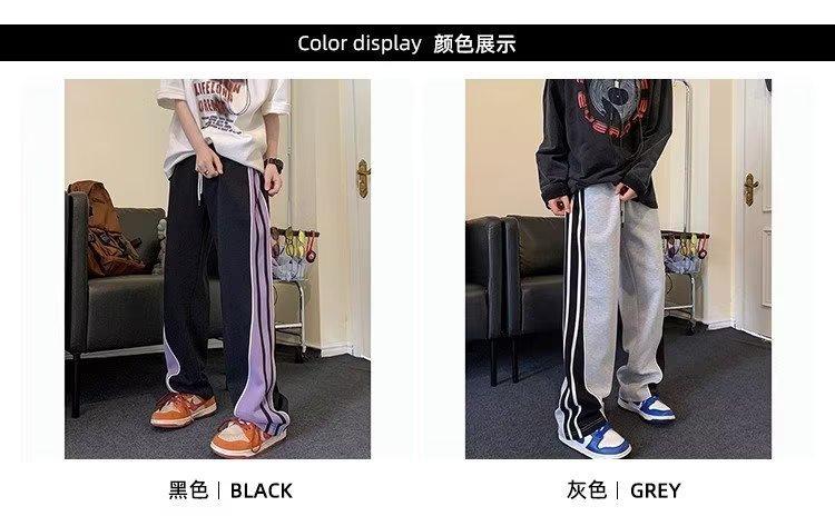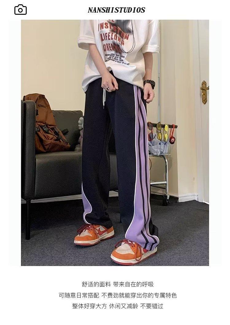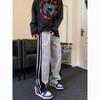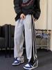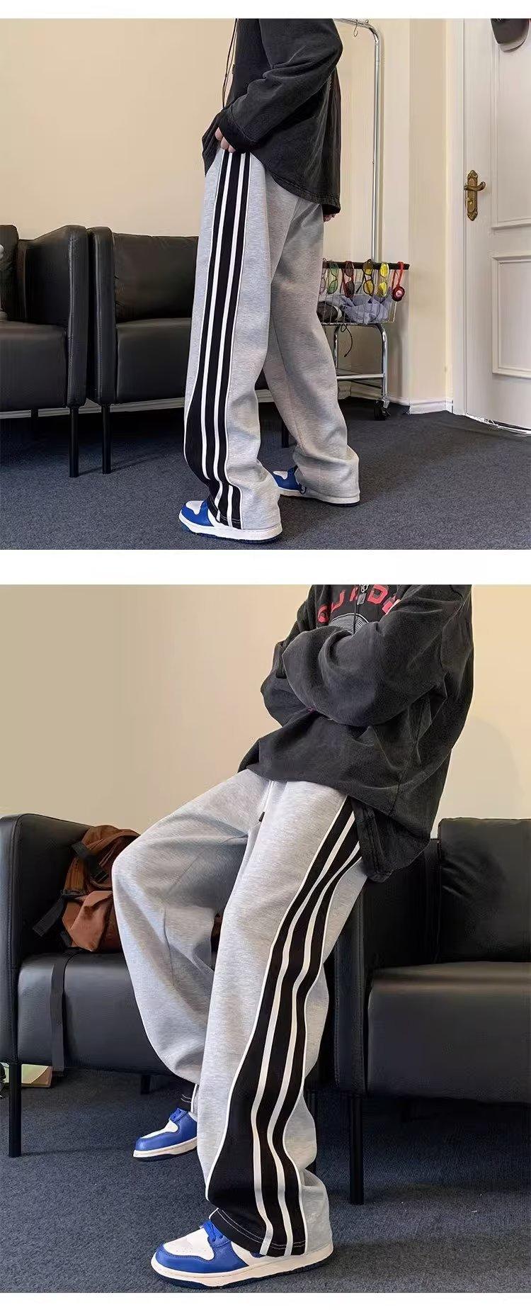 Pantalones deportivos de otoño para hombre, estilo americano, de marca High Street, con costuras a rayas, holgados, rectos, de pierna ancha e informales