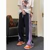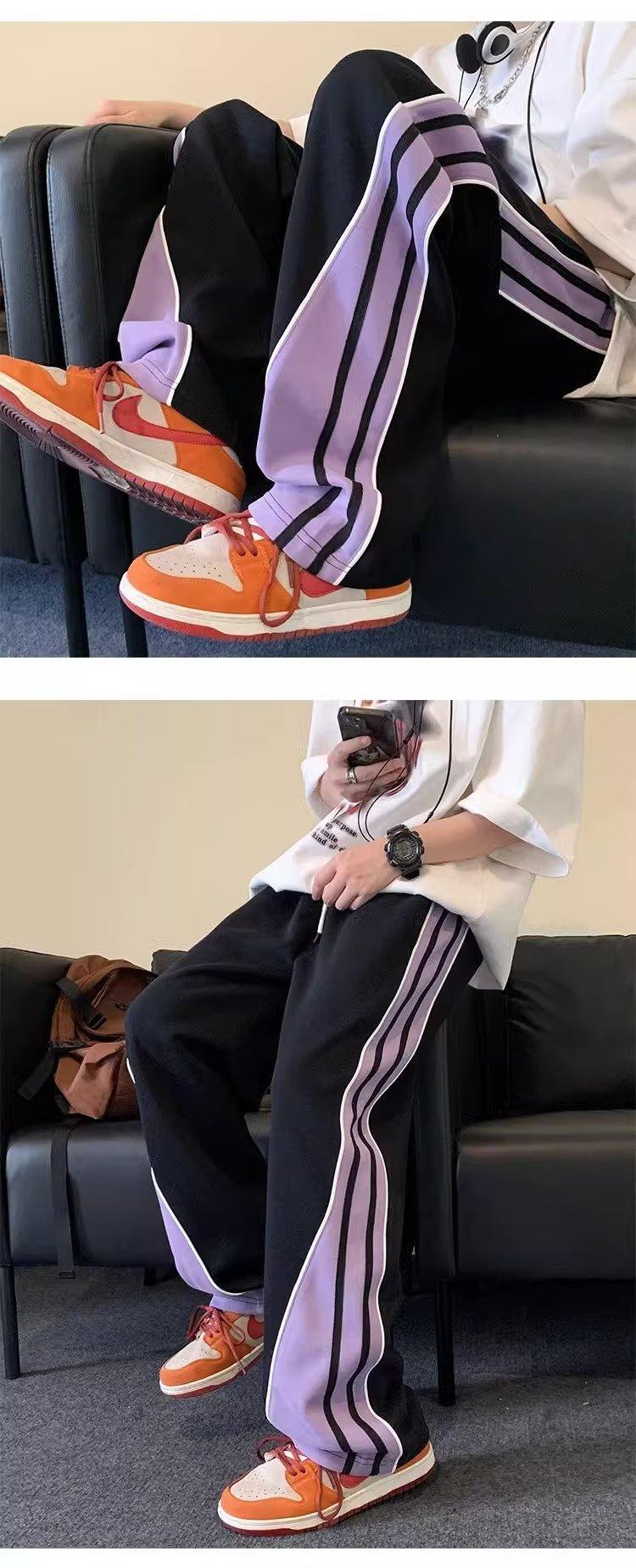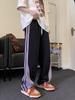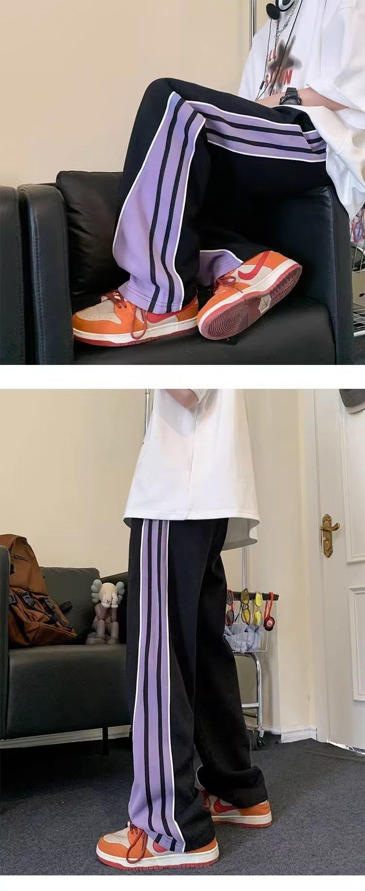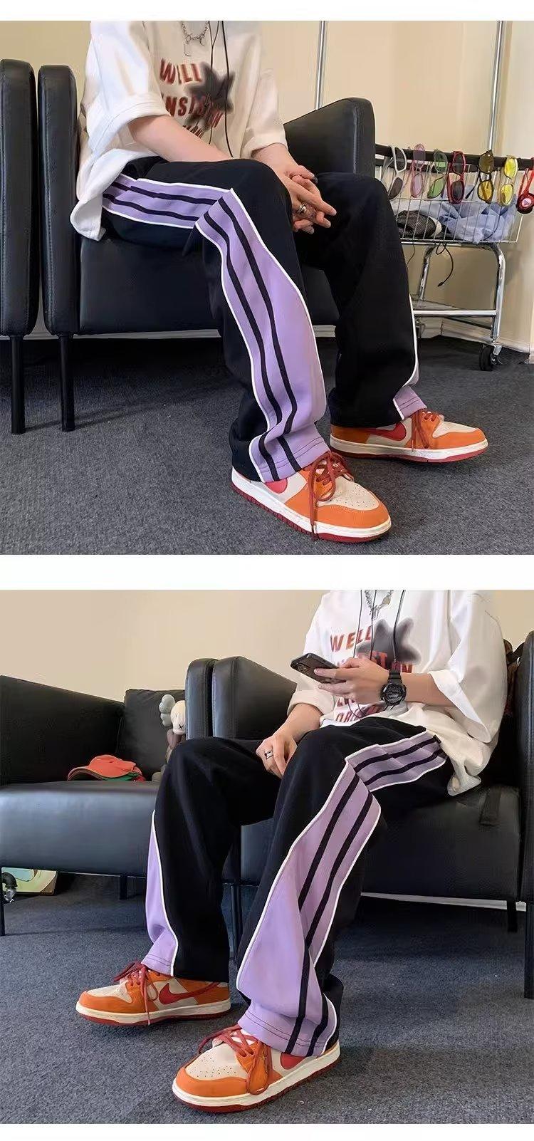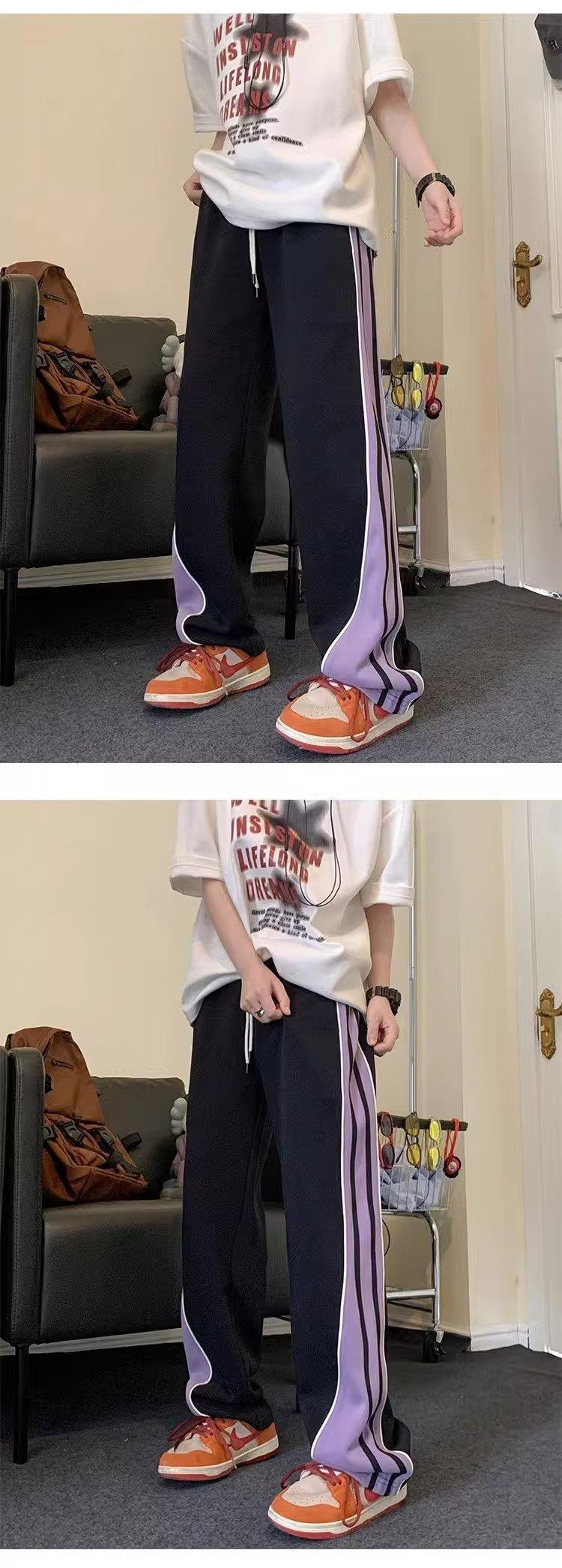 Pantalones deportivos de otoño para hombre, estilo americano, de marca High Street, con costuras a rayas, holgados, rectos, de pierna ancha e informales
