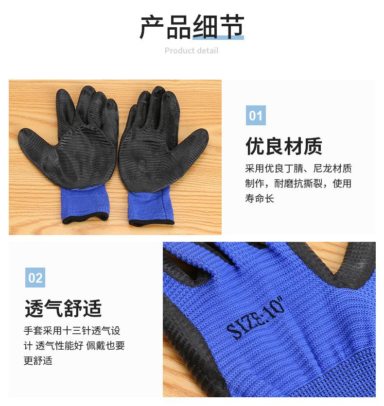 Guantes de Protección Laboral, Guantes de Nailon Sumergidos de Trece Agujas, Protección para Sitios de Construcción, Guantes Sumergidos Tejidos Gruesos Resistentes al Desgaste al por Mayor
