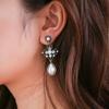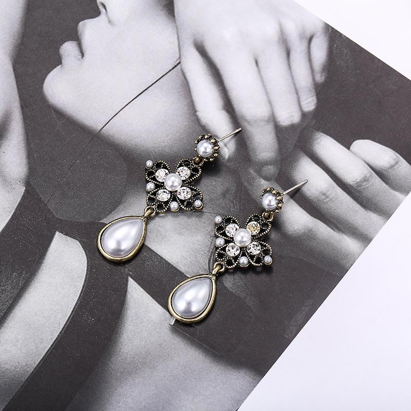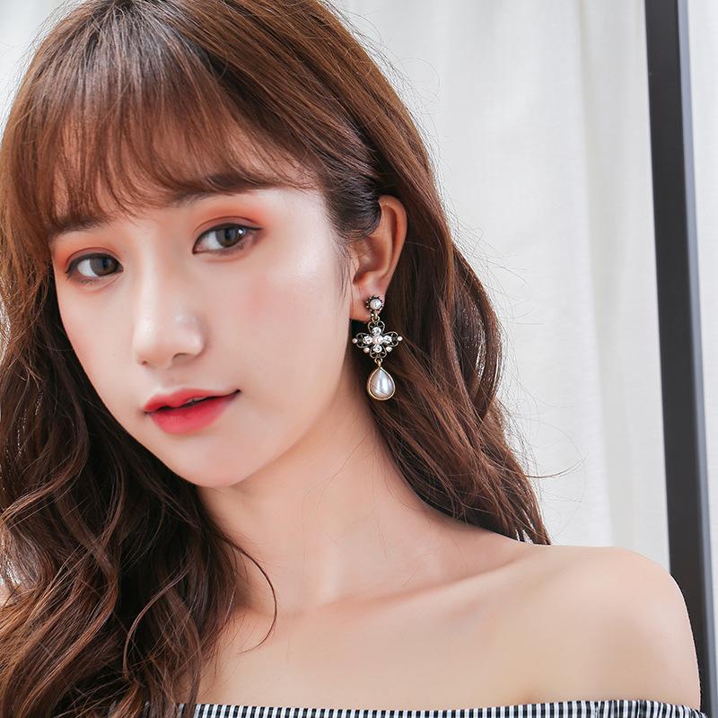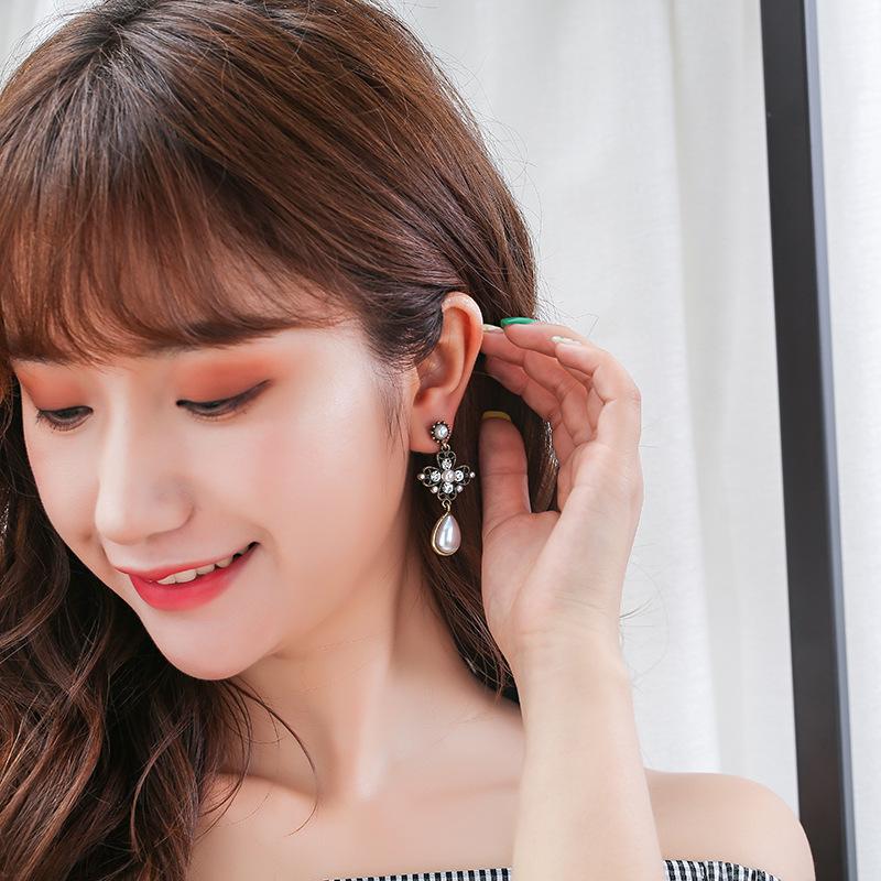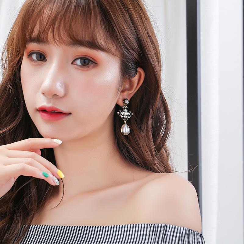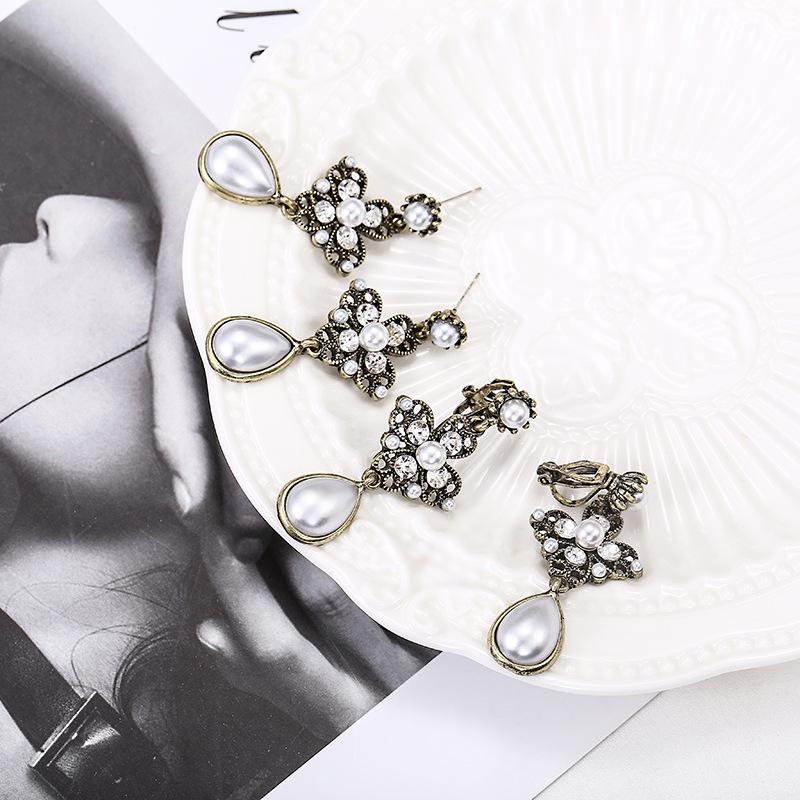 Pendientes de plata de ley 925 con colgante vintage de bronce europeo y americano 2023, con broche a juego, temperamento femenino, pendientes de perlas para niña, B976