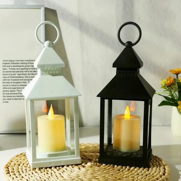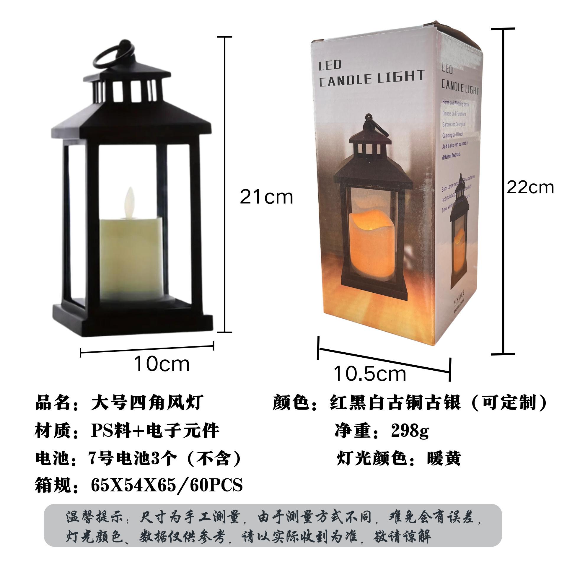 Vela electrónica led de Halloween transfronteriza adornos navideños tamaño grande lámpara de viento de cuatro esquinas lámpara de vela clásica europea