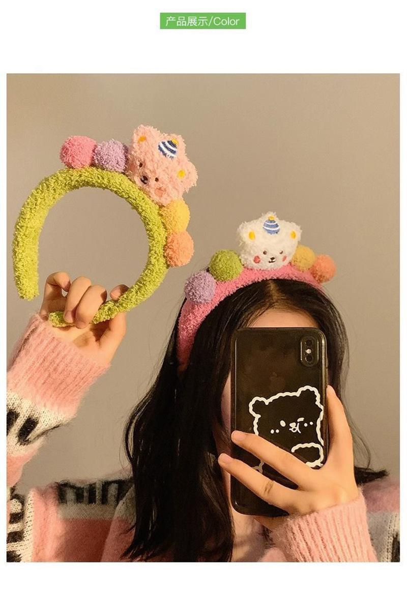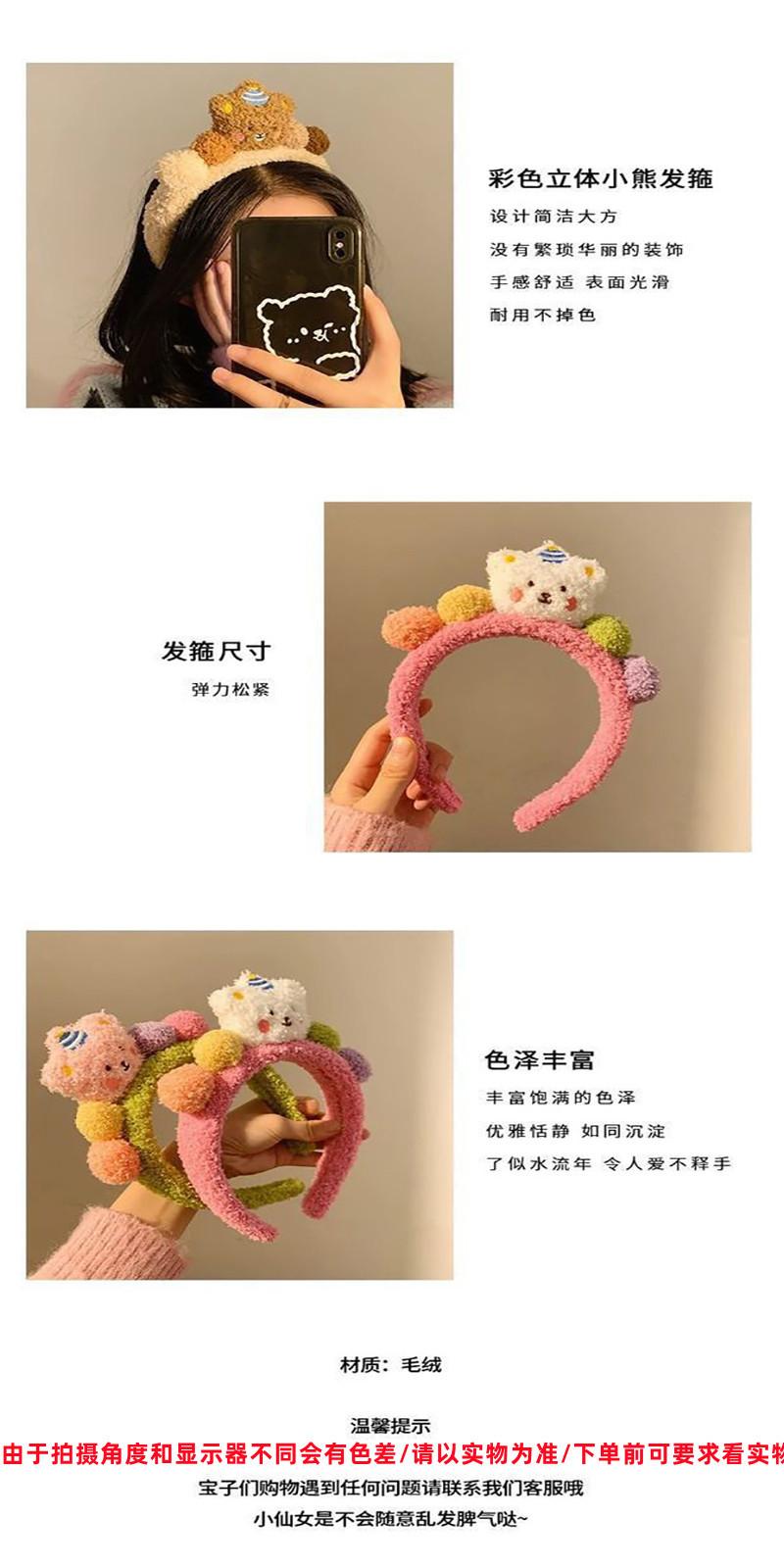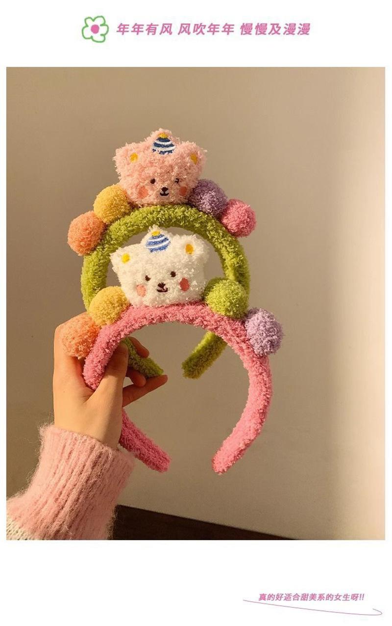 Bonita diadema de oso de otoño e invierno, diadema de peluche con dibujos animados para lavarse la cara, tocado colorido súper lindo, horquilla para niña con foto que combina con todo.