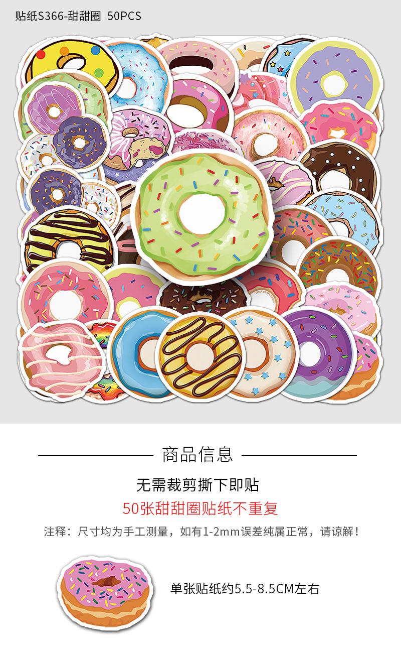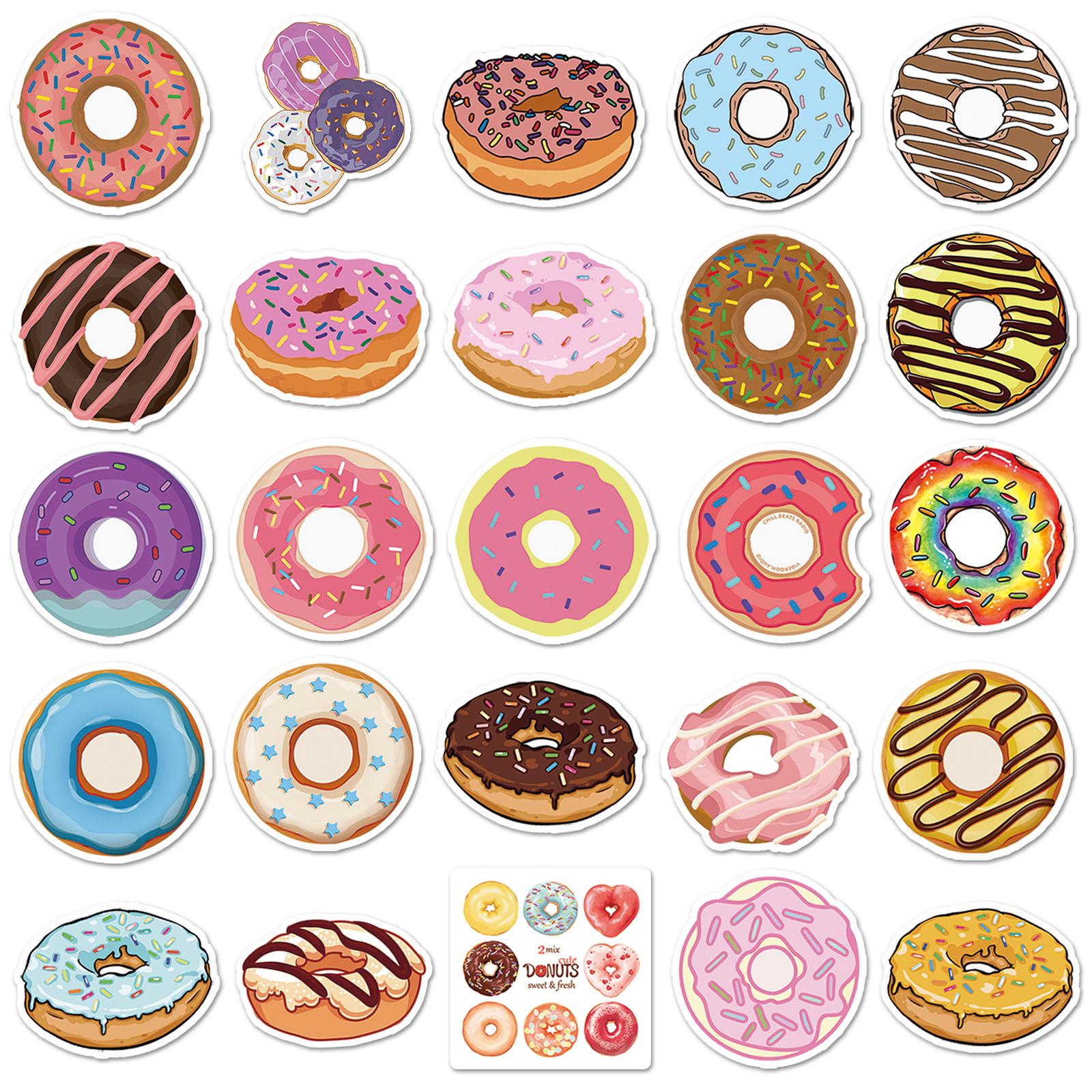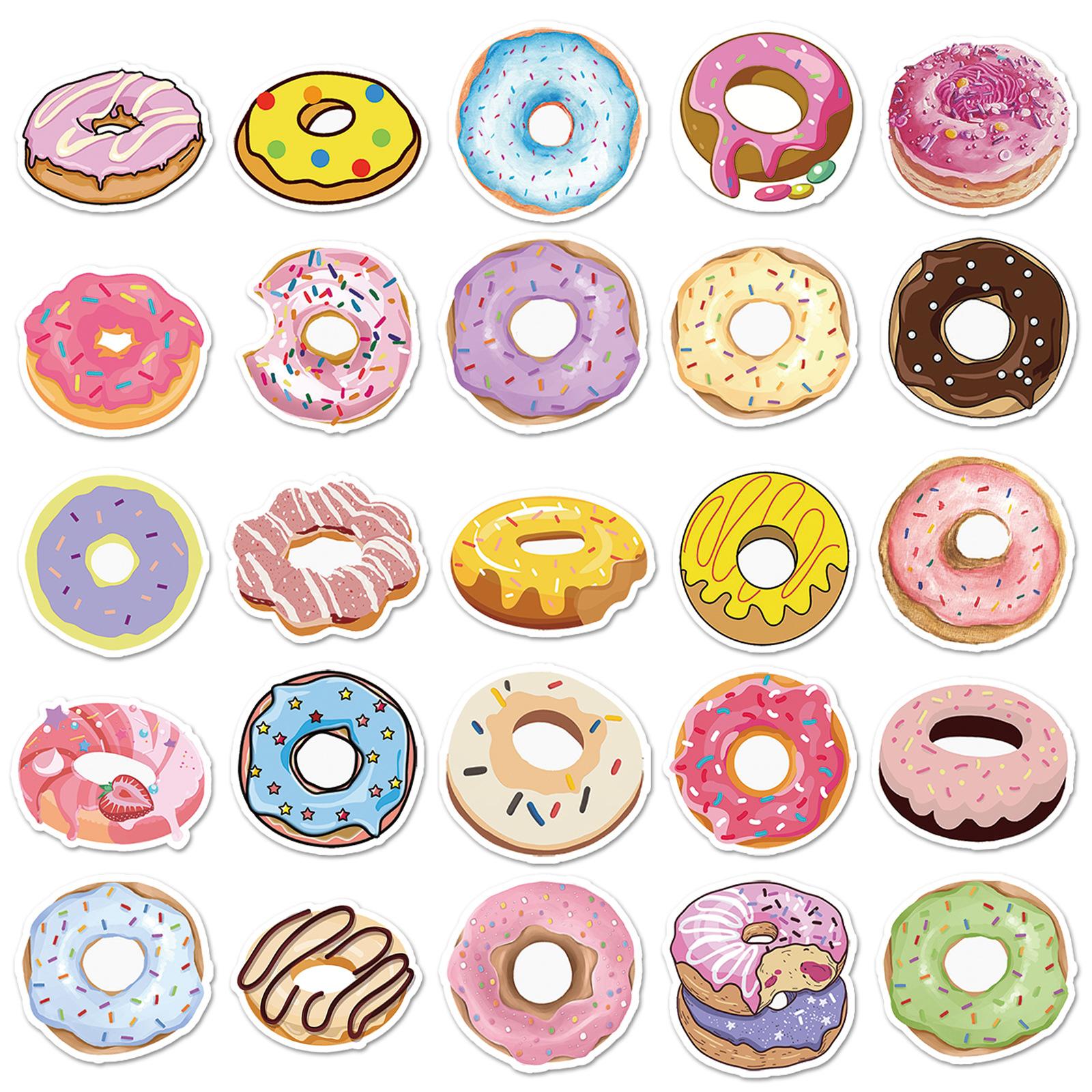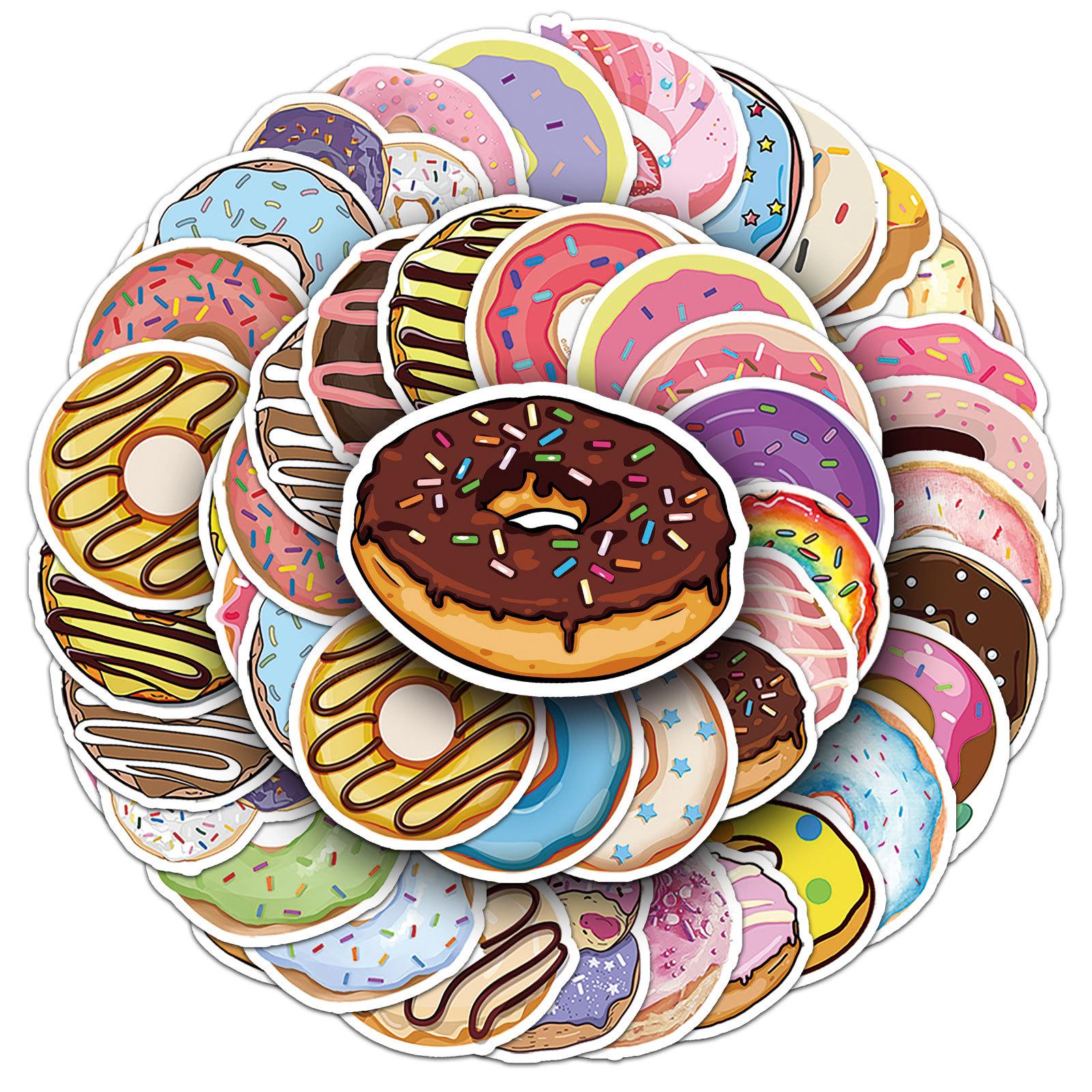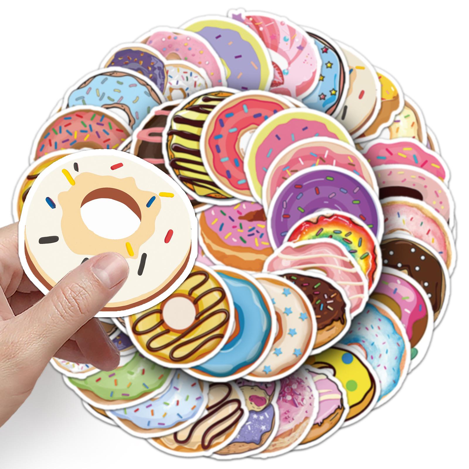 50 hojas de pegatinas de dibujos animados de donut para equipaje, pegatinas creativas de grafiti para scooter, ordenador, tableta, decoración, venta al por mayor
