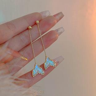 Pendientes de borla de cola de pez con aguja de plata 925 para mujer, diseño de nicho, temperamento, pendientes largos de celebridades de Internet, pendientes con personalidad.