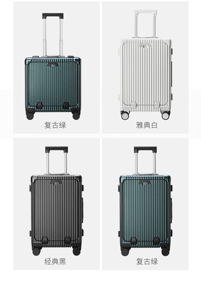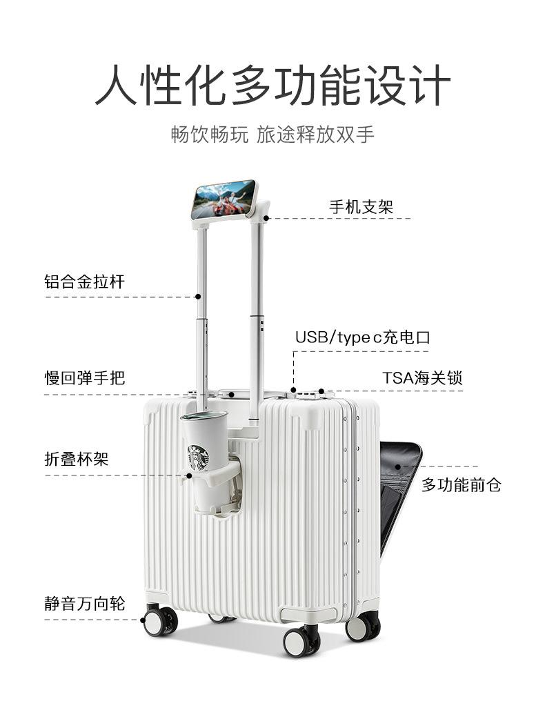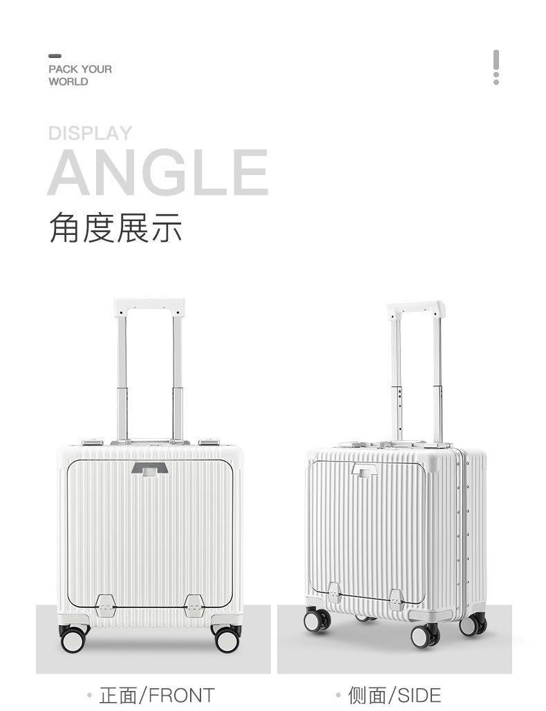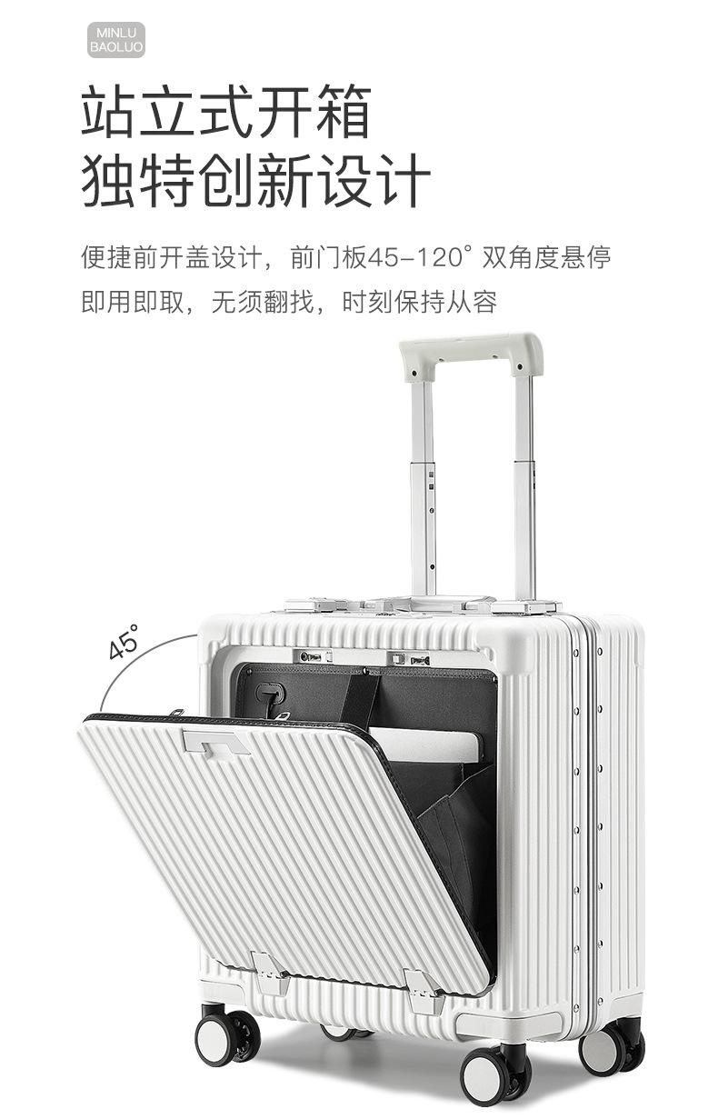 Equipaje de mano de apertura frontal puede contener computadora pc marco de aluminio contraseña maleta trolley de 20 pulgadas rueda universal maleta con carga