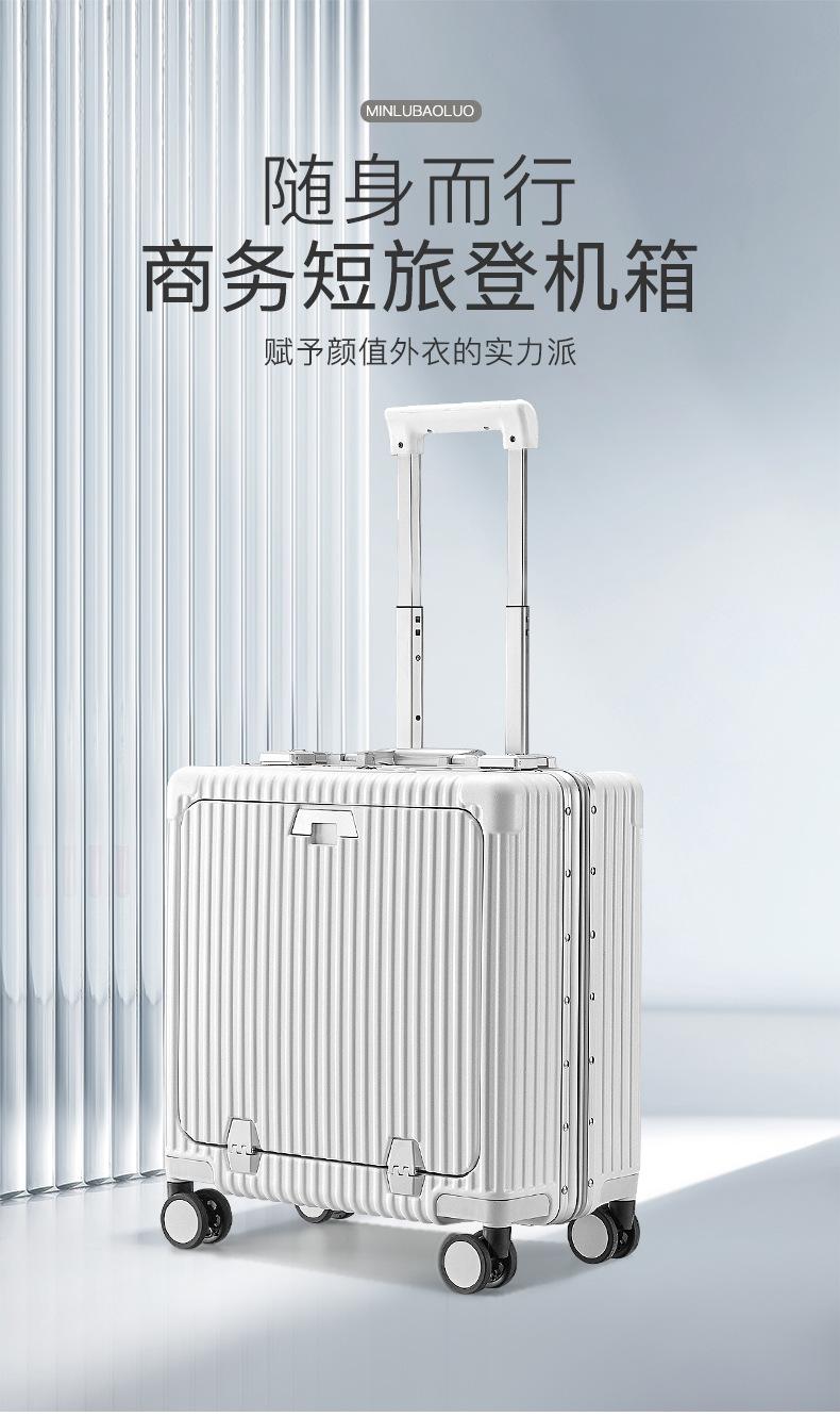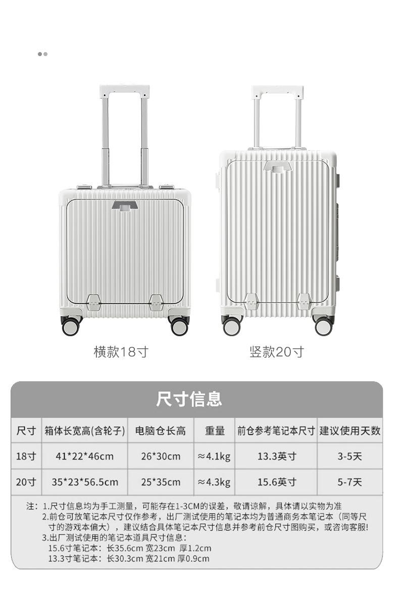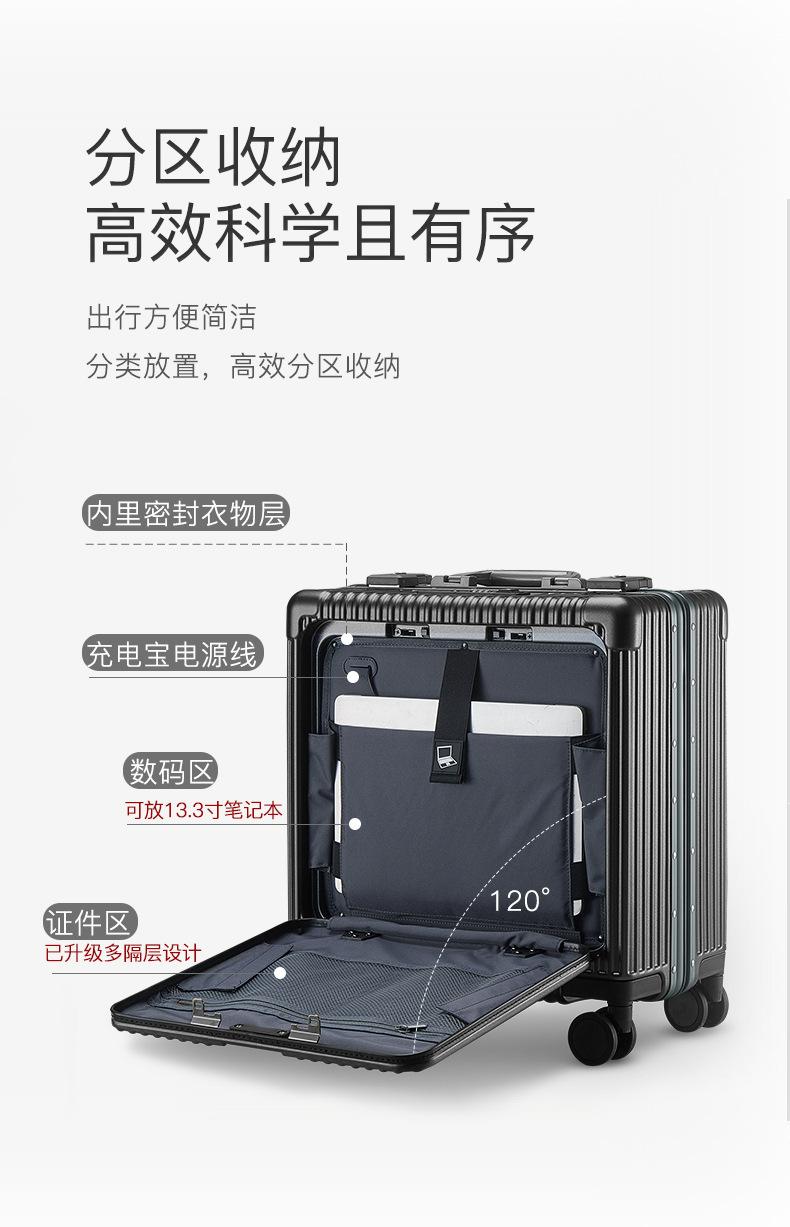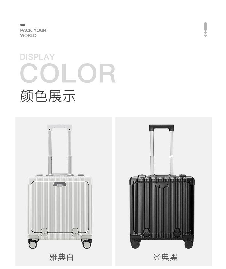 Equipaje de mano de apertura frontal puede contener computadora pc marco de aluminio contraseña maleta trolley de 20 pulgadas rueda universal maleta con carga