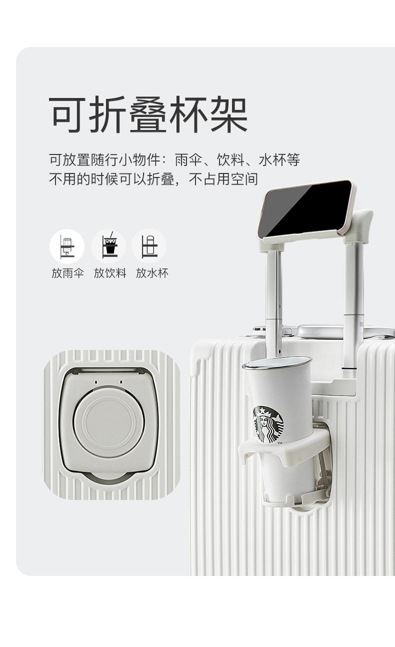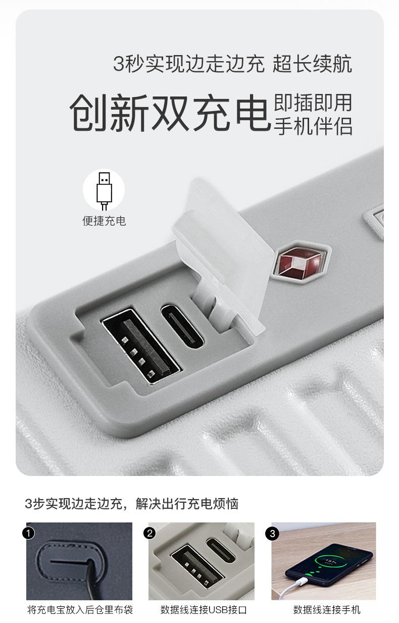 Usb/typec dual charging ports, side hooks, water cup holder, mobile phone holder, front opening