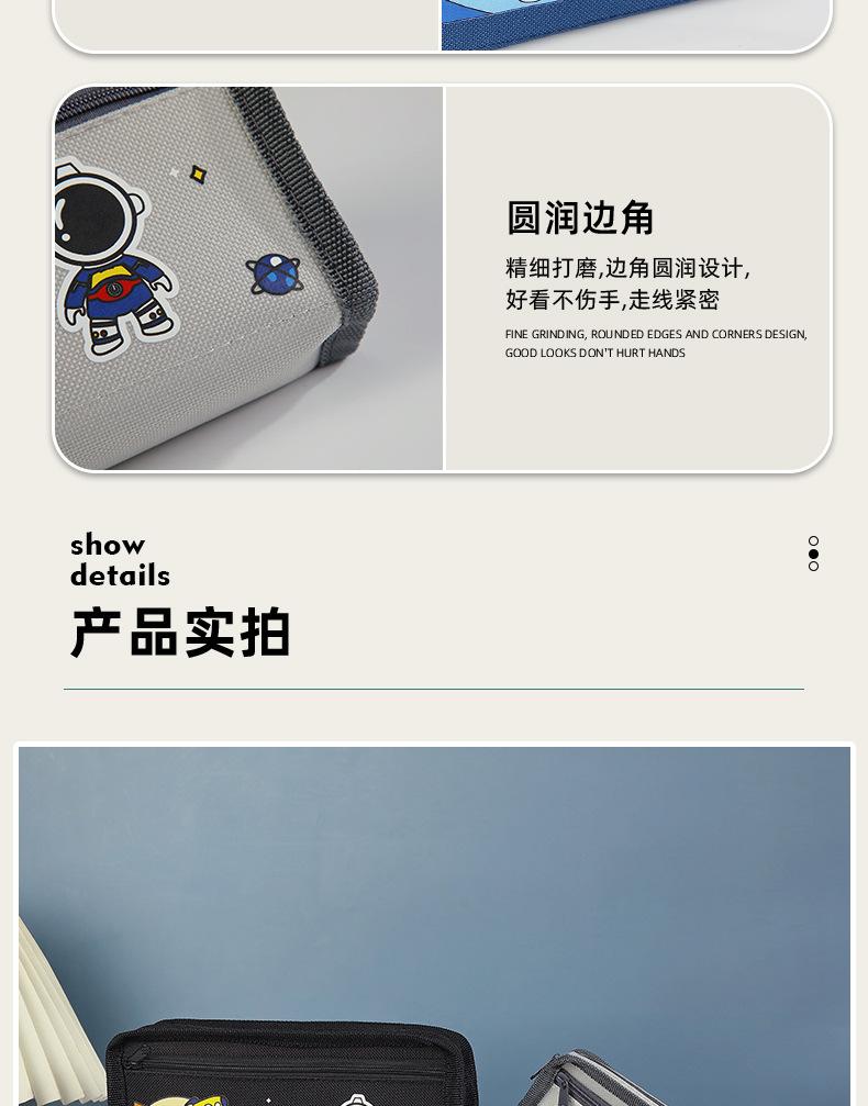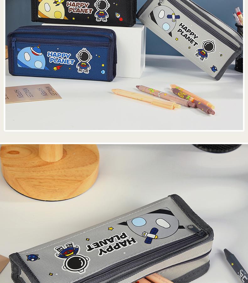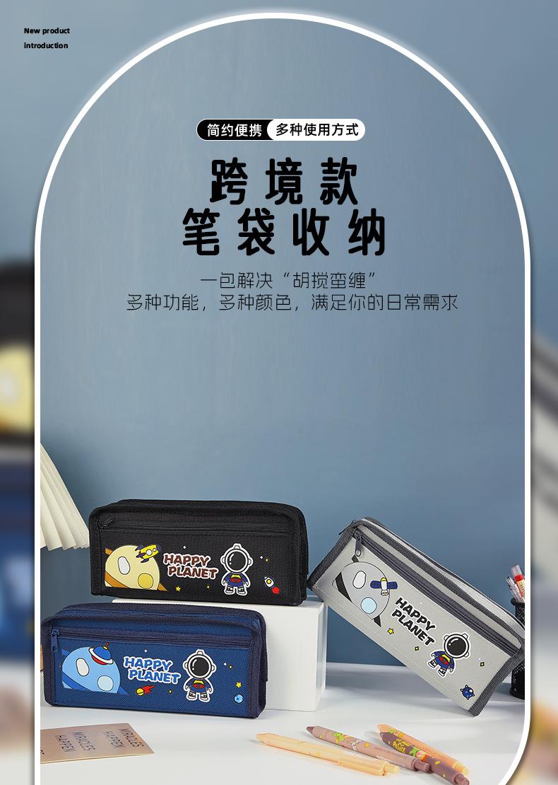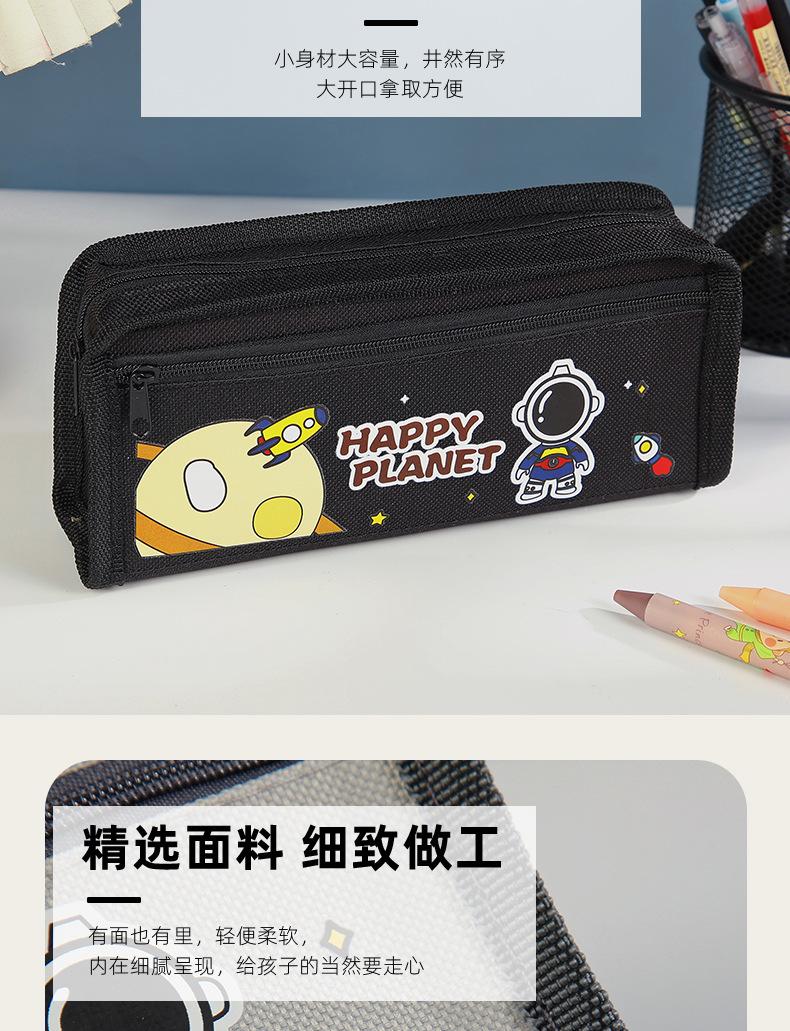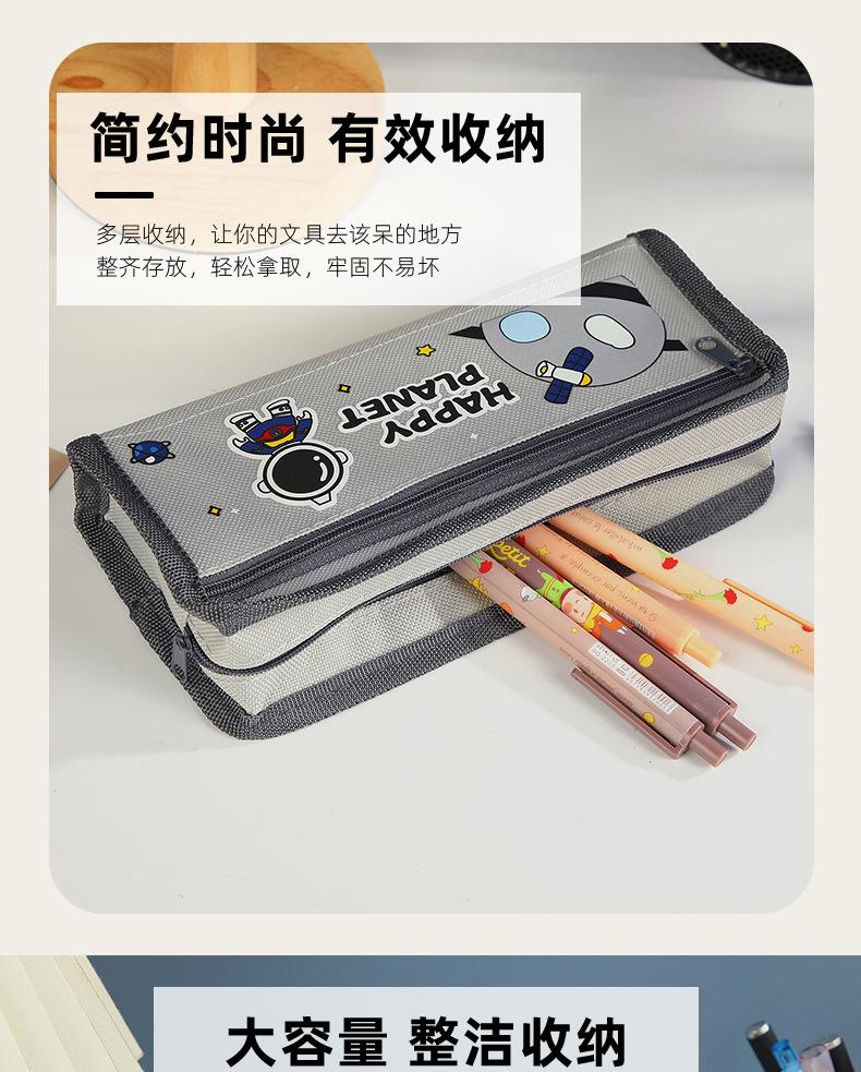 Estuche para lápices de color sólido transfronterizo de tela Oxford para estudiantes de primaria y secundaria, simple, de dibujos animados, de gran capacidad, con almacenamiento por capas