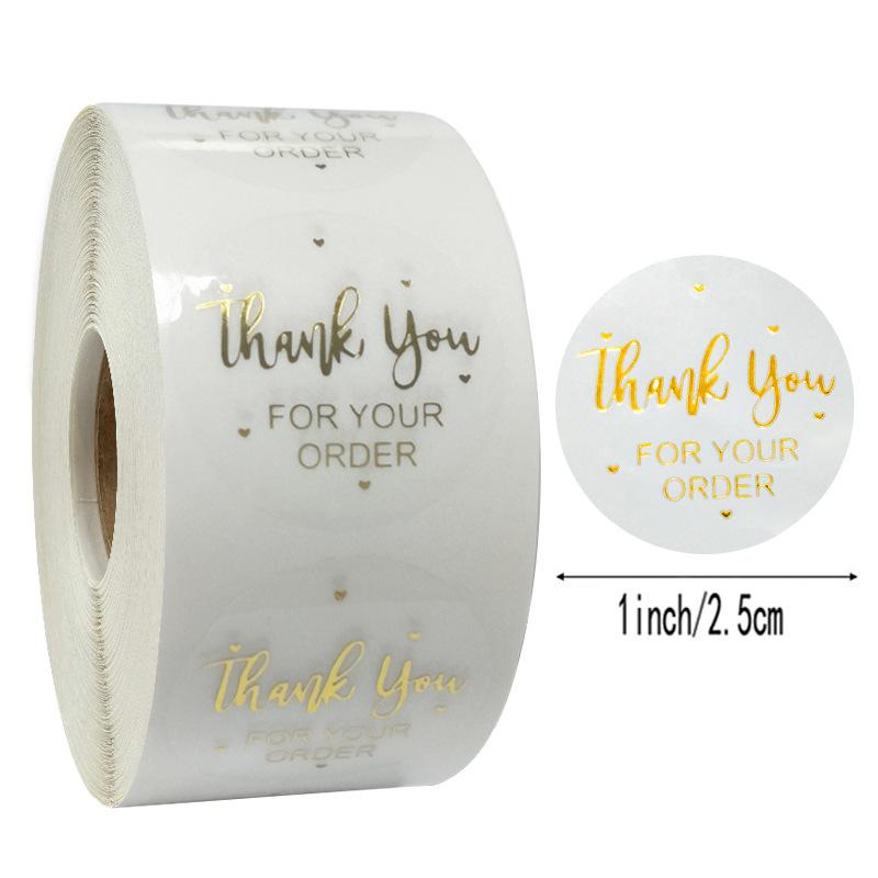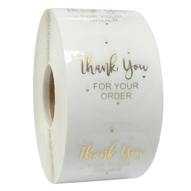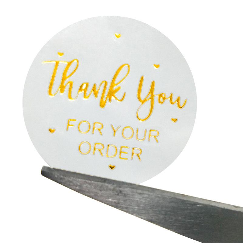 Punto Venta al por Mayor Redondo Transparente Gracias por Ordenar Calcomanías Estampadas en Caliente Etiquetas Blancas Tienda Calcomanías de Regalo Hechas a Mano