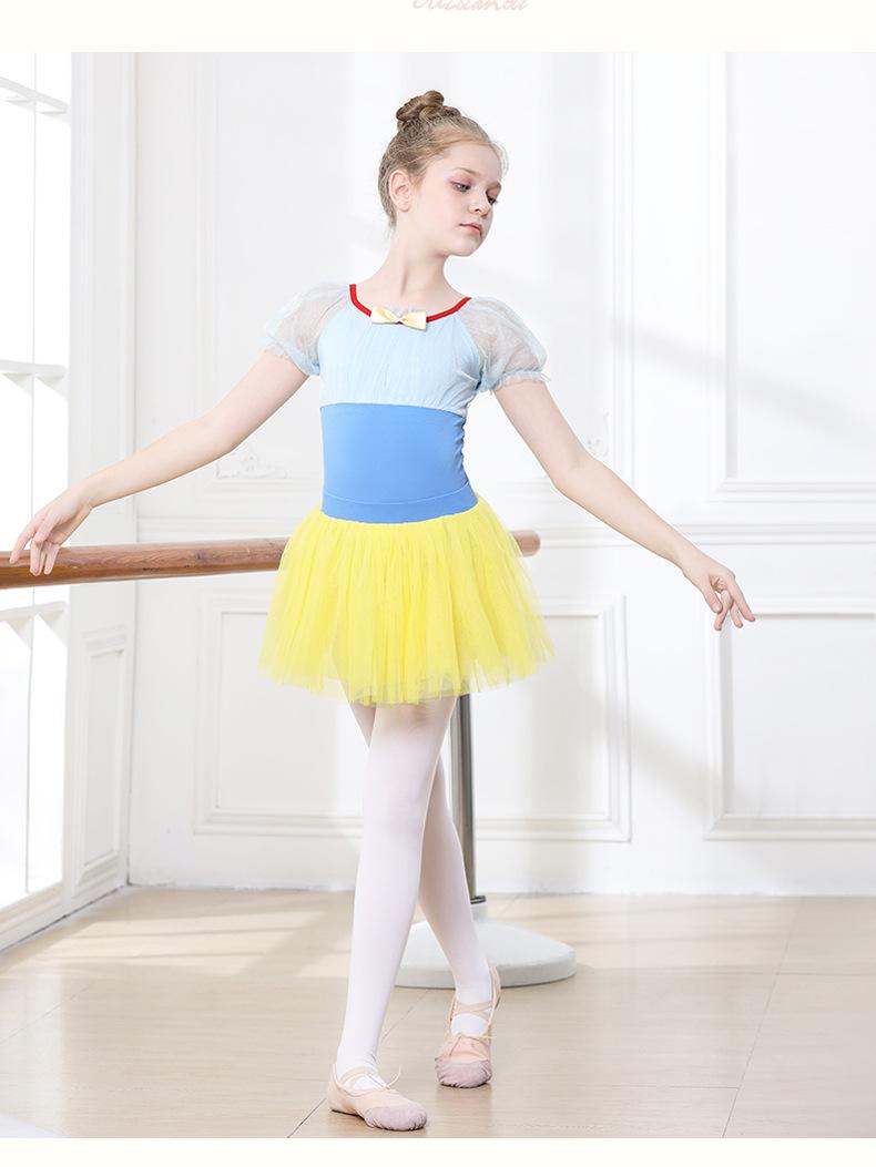 Ropa de Baile para Niñas Ropa de Práctica para Niños Danza China Ballet de Niñas Verano Manga Corta Tirantes Falda Blanca Nieves