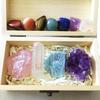 Producto n.º 2: Piedras en bruto (amazonita, cuarzo rosa, racimos de amatista, varillas de yeso, columnas de cristal)