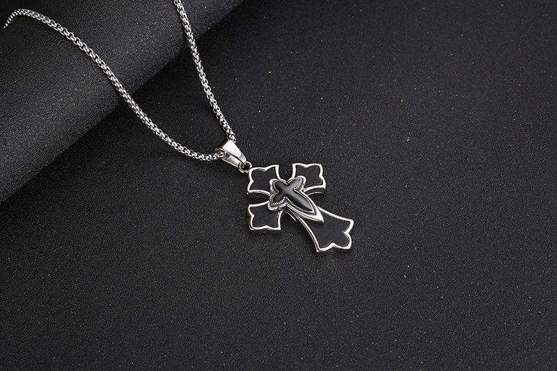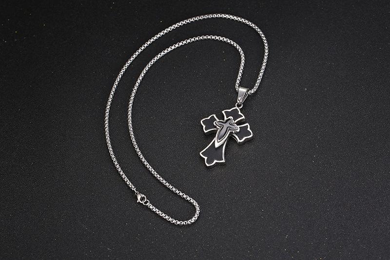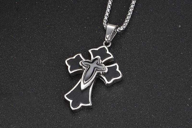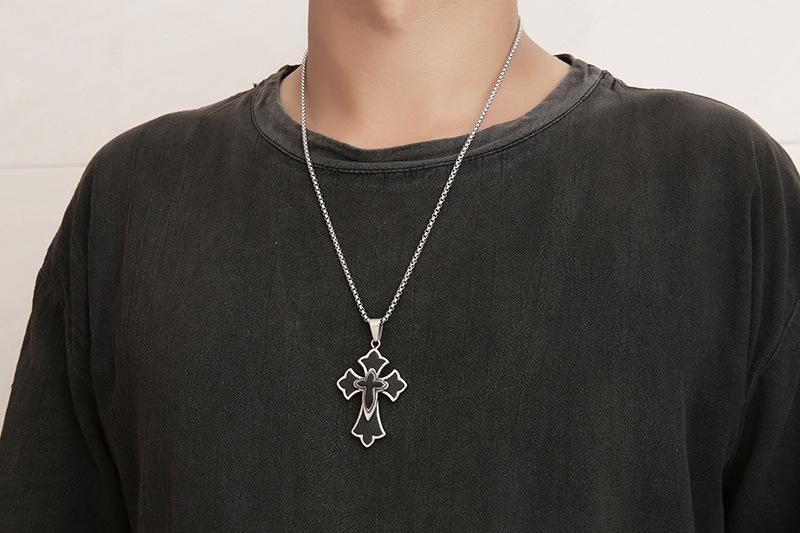 Collar de acero de titanio con diseño de cruz de piel de oveja, colgante con temperamento, accesorios de moda para hombre SP406