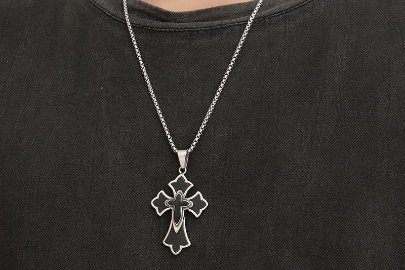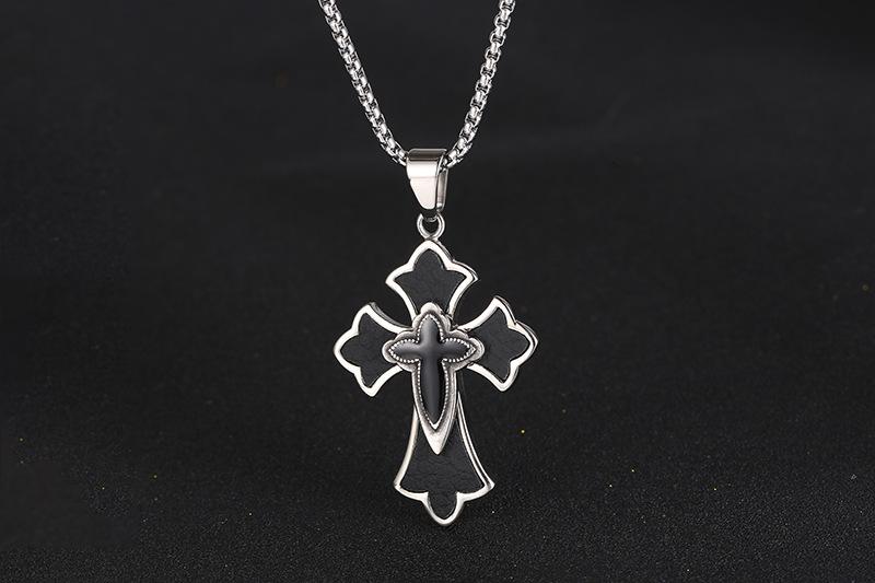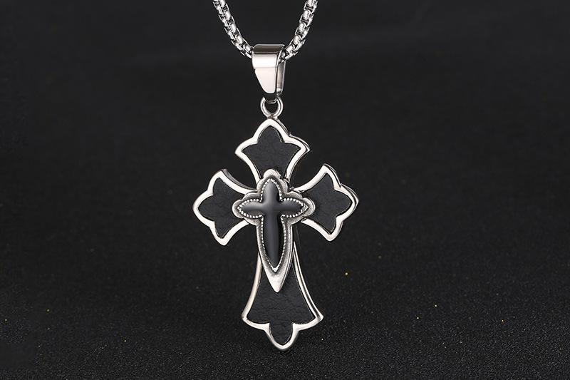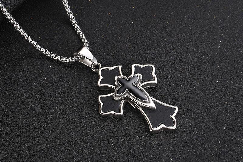 Compra Collar de acero de titanio con diseño de cruz de piel de oveja, colgante con temperamento, accesorios de moda para hombre SP406 al por mayor en Joom.pro