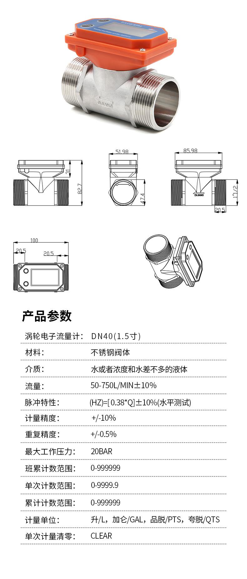 Medidor de flujo industrial con pantalla digital inteligente, sensor de flujo de agua de tubería de aguas residuales de alta precisión, medidor de líquido de acero inoxidable