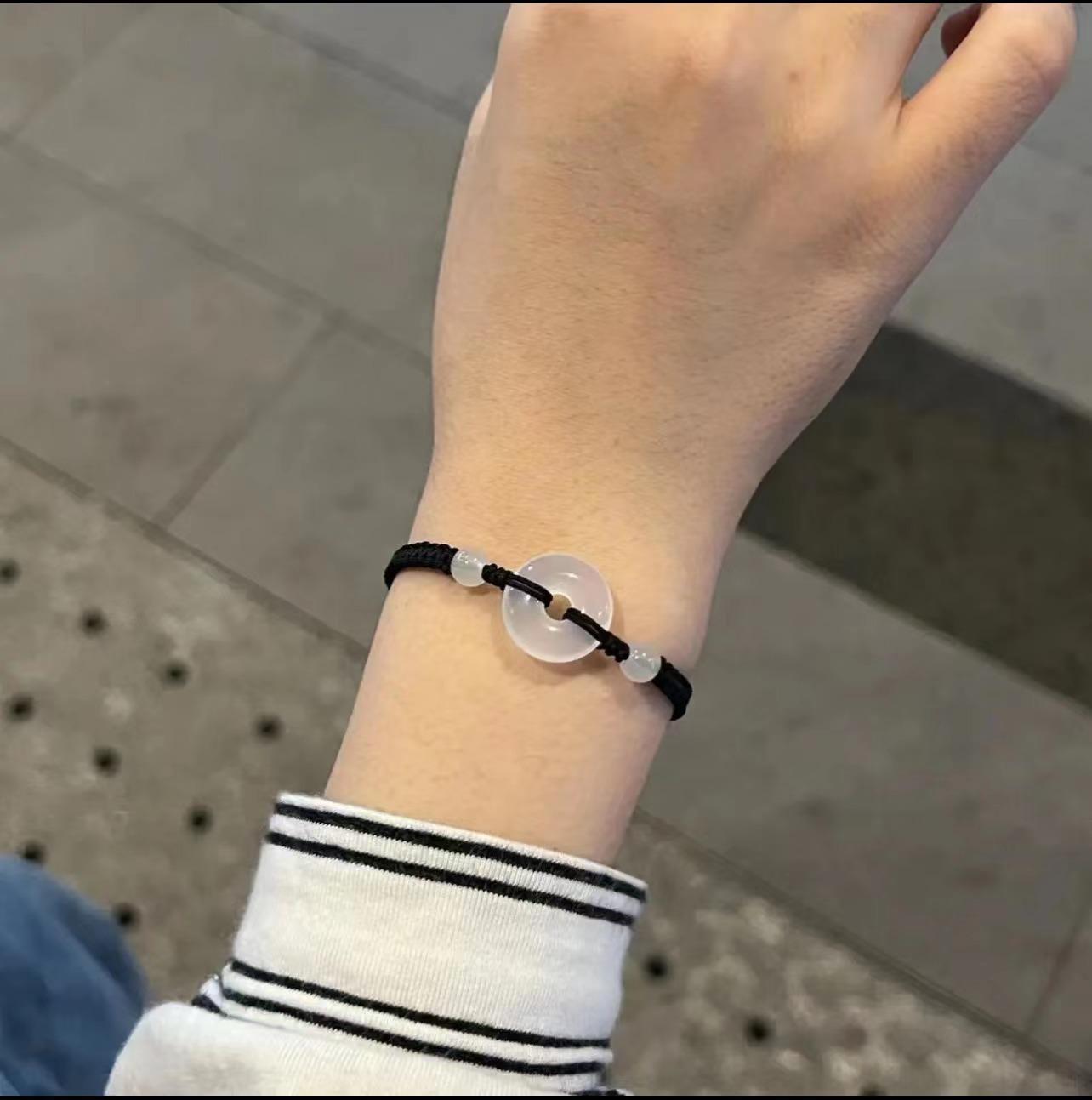 Chalcedony peace buckle hand rope black rope, Chalcedony peace buckle hand rope red rope