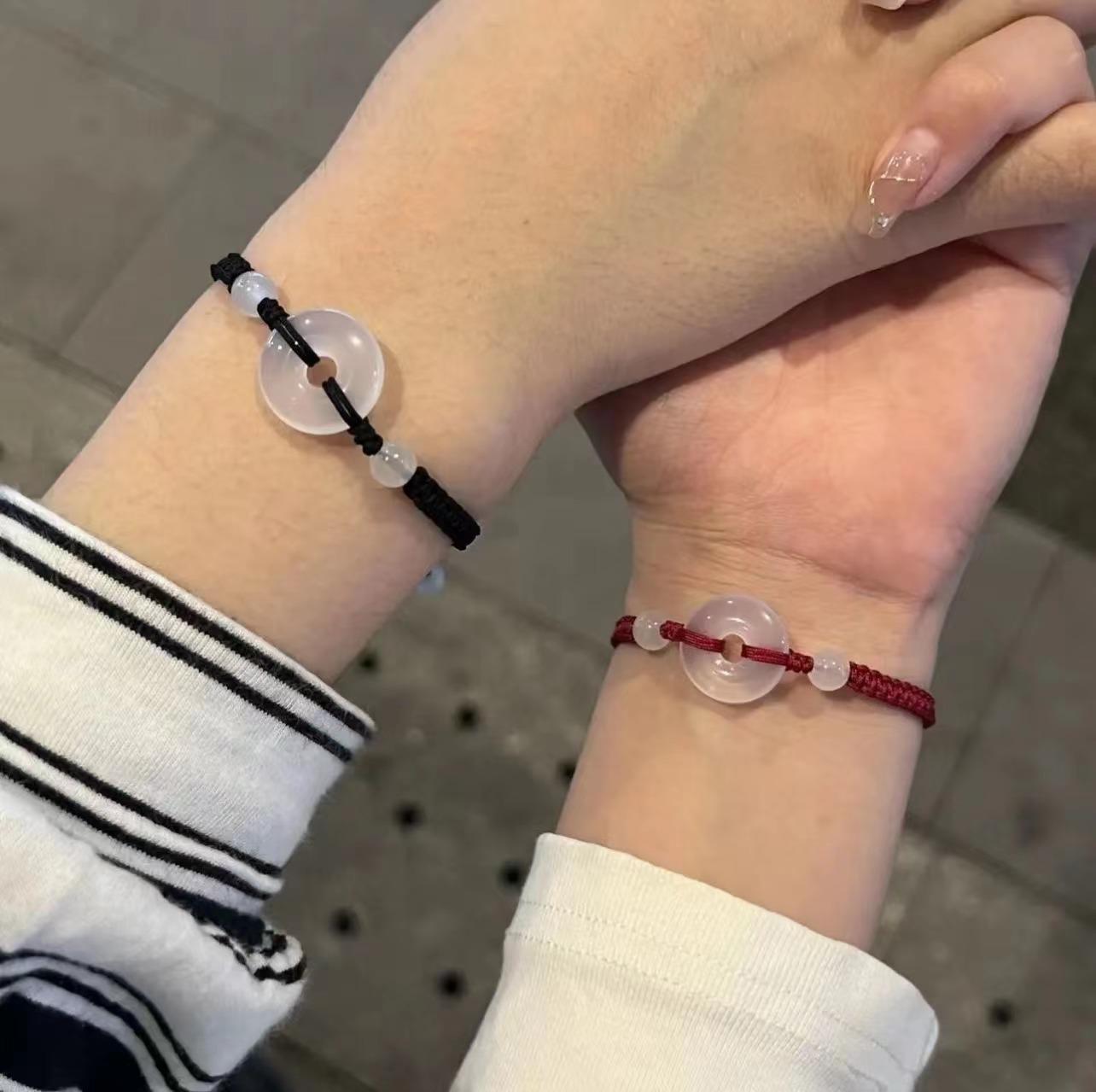 Pulsera Trenzada para Pareja con Hebilla de la Paz de Calcedonia Simple Elegante Estilo Chino Pulsera para Mejor Amigo de Estudiante Dulce Regalo