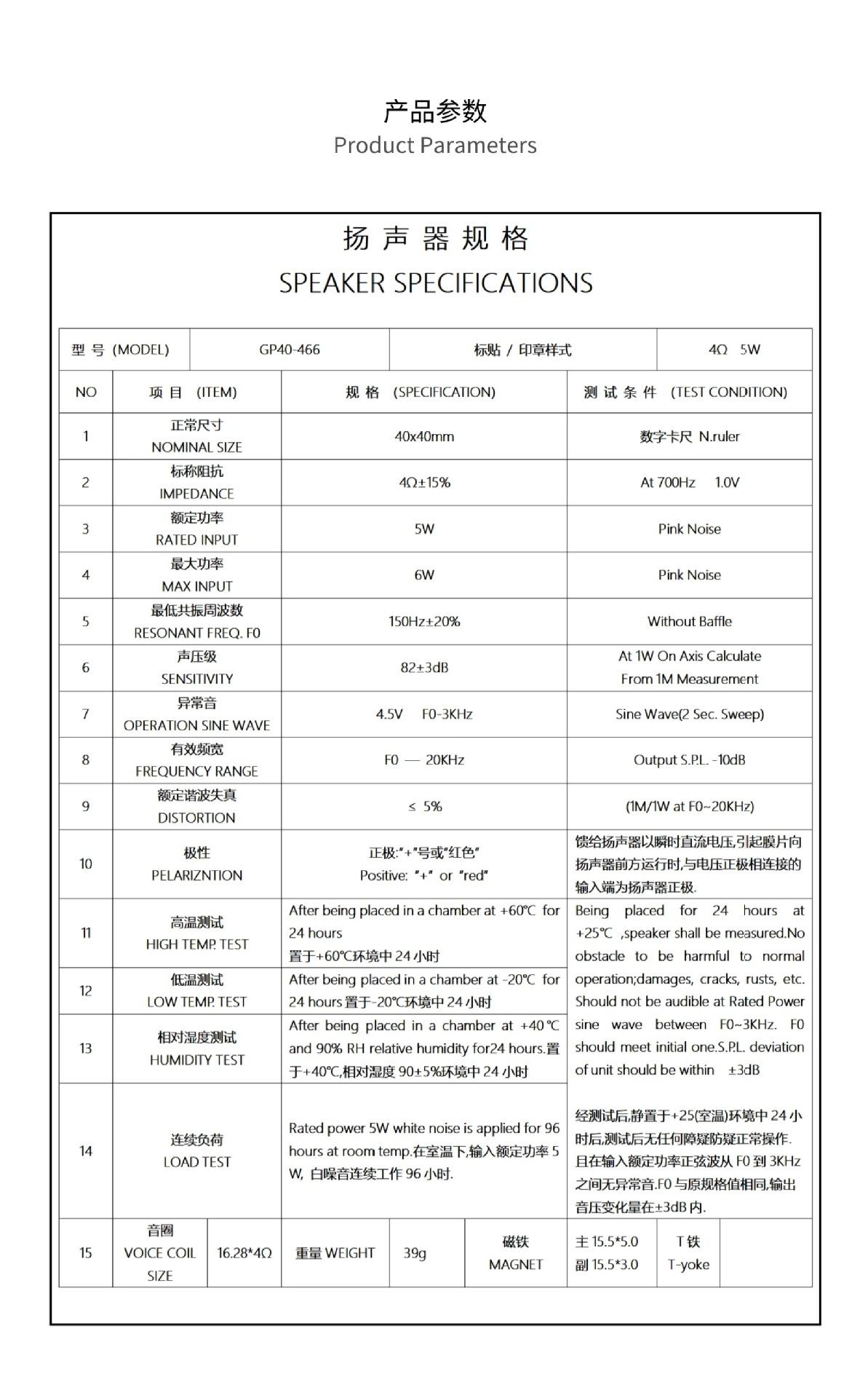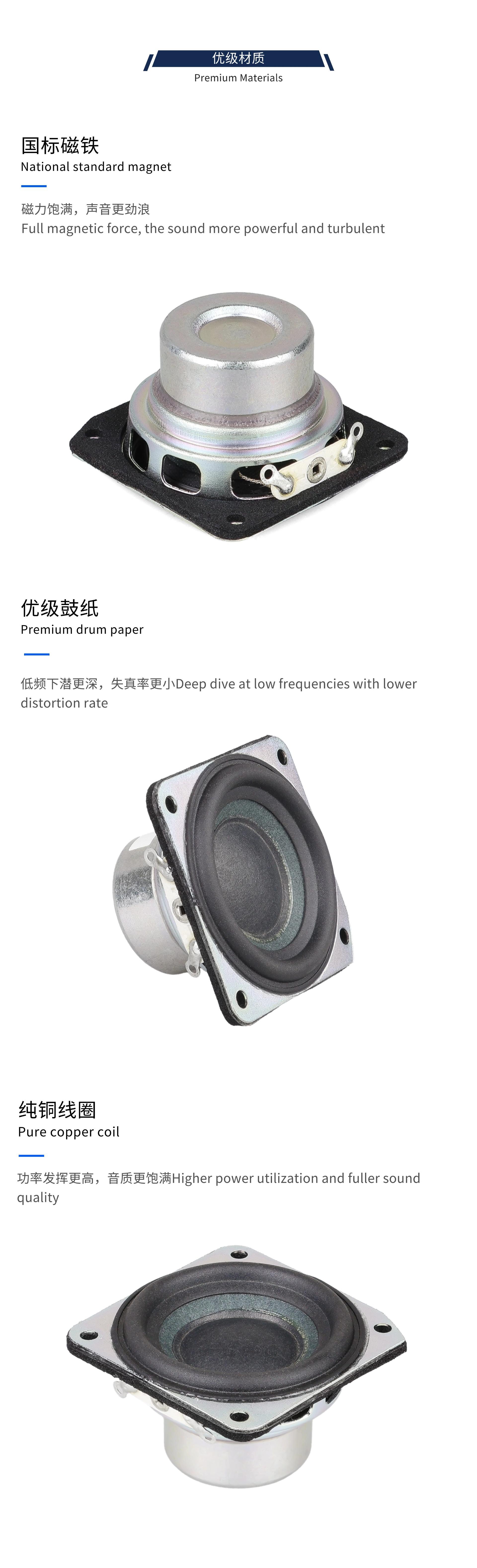Altavoz de rango completo de 40 mm 1.5 pulgadas 4 ohmios 5 W Doble magnético 16 núcleos Borde de goma Carrera larga Cañón pequeño de acero Imán de neodimio