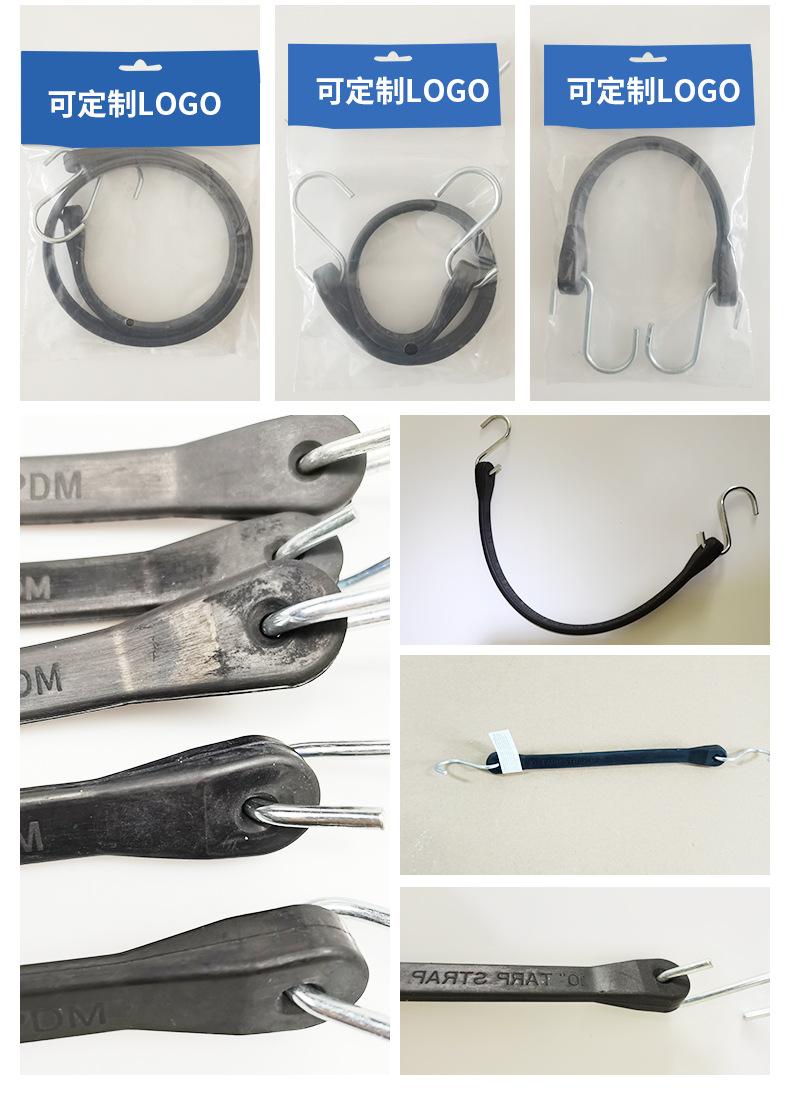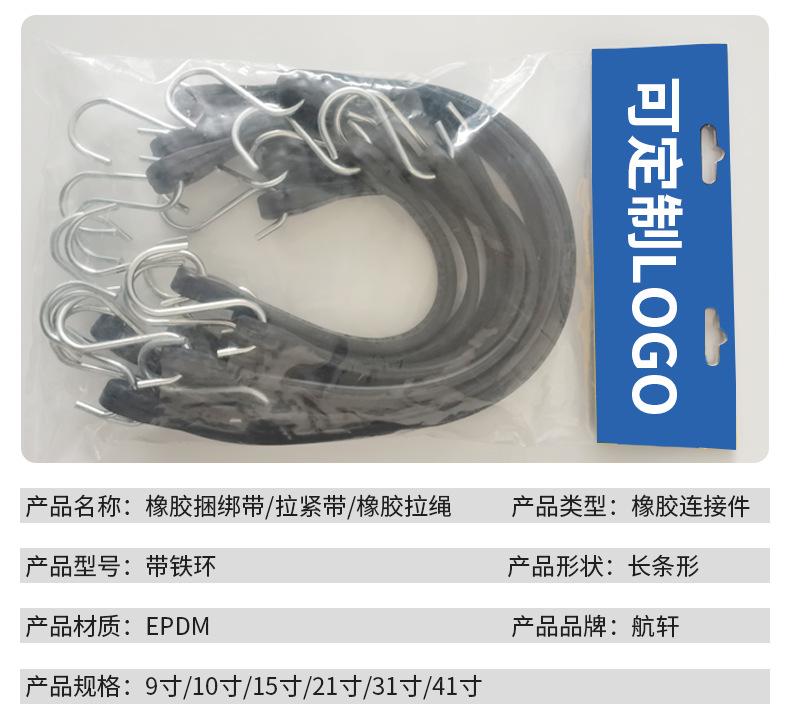Vendaje de goma EPDM, las especificaciones son longitud de la parte EPDM, excluyendo los ganchos, el ancho de ambos extremos es superior a 22 mm, el grosor de la cabeza es de 11,5 mm, el ancho de la banda central es superior a 15,2 mm, el grosor es superior a 6 mm. El texto de advertencia en el vendaje es convexo de 0,3 mm, toda la banda tiene un borde biselado de 2 mm de radio, la superficie del producto es lisa, material EPDM negro (excluyendo goma reciclada), la dureza superficial es de 60 grados.