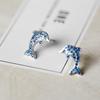 Pendientes de plata S925 con forma de delfín, bonitos y frescos, con diamantes, exquisitos pendientes pequeños para mujer, pendientes sencillos de animales que combinan con todo.