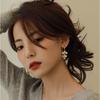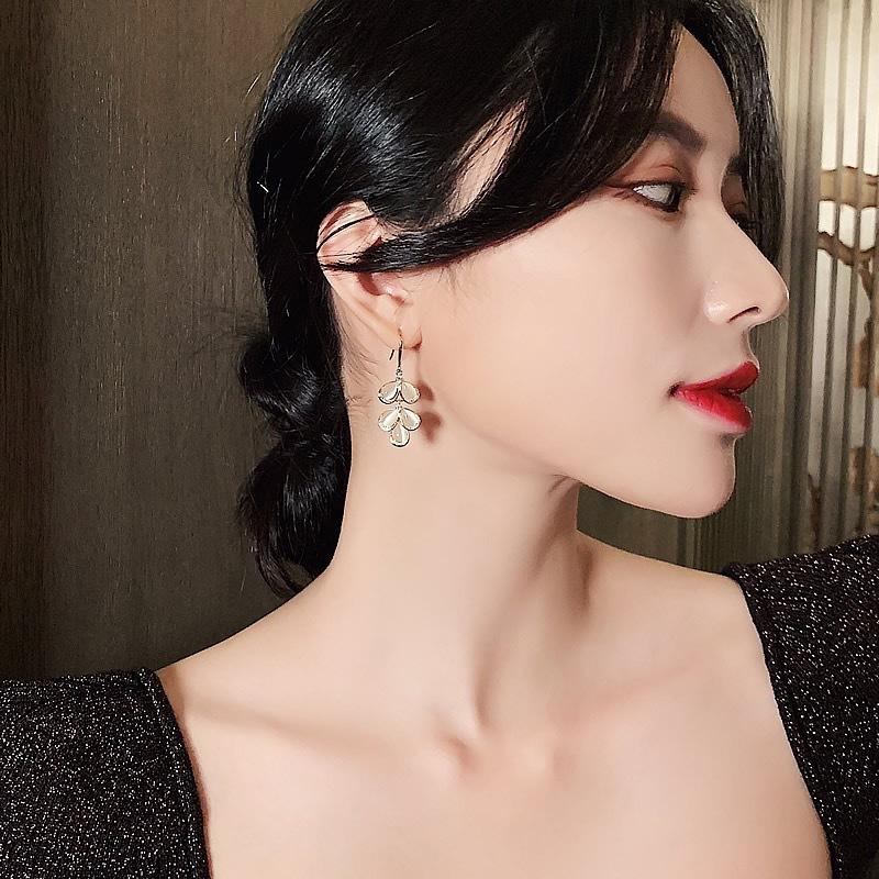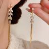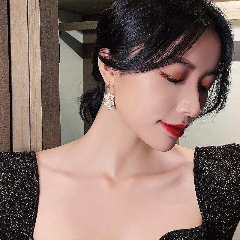 Pendientes elegantes de moda coreana con borlas de piedra de ojo de gato y hojas, de alta gama, con personalidad, combinables, ligeros y de lujo, pequeños pendientes de celebridades de Internet.