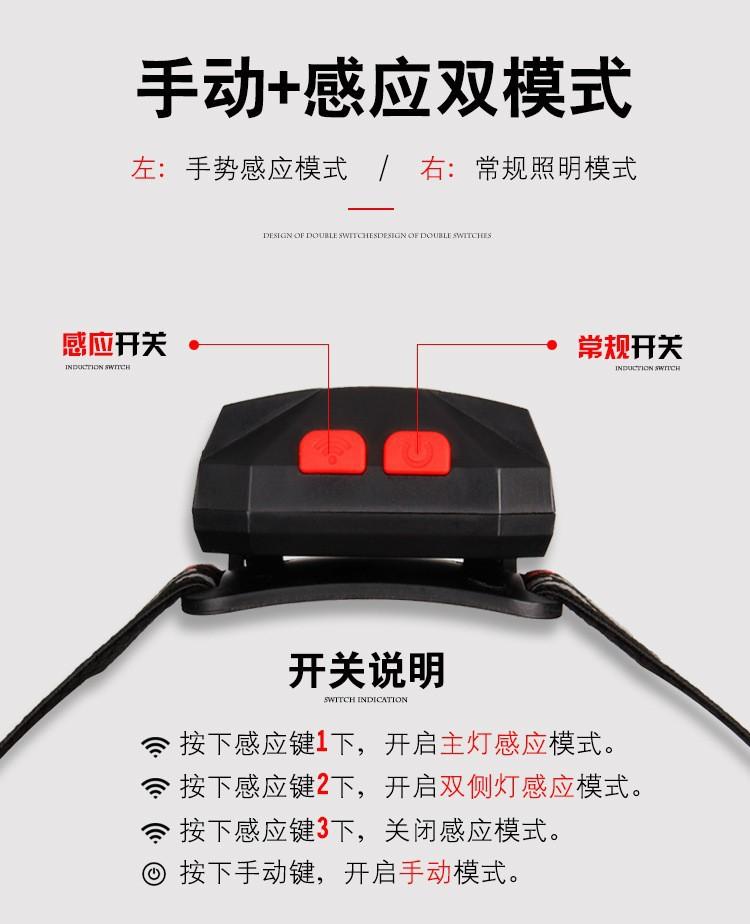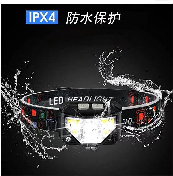 Faro de inducción de luz potente, mini faro transfronterizo con carga USB COB, luz roja, LED para correr de noche, pesca nocturna al aire libre, cabeza impermeable