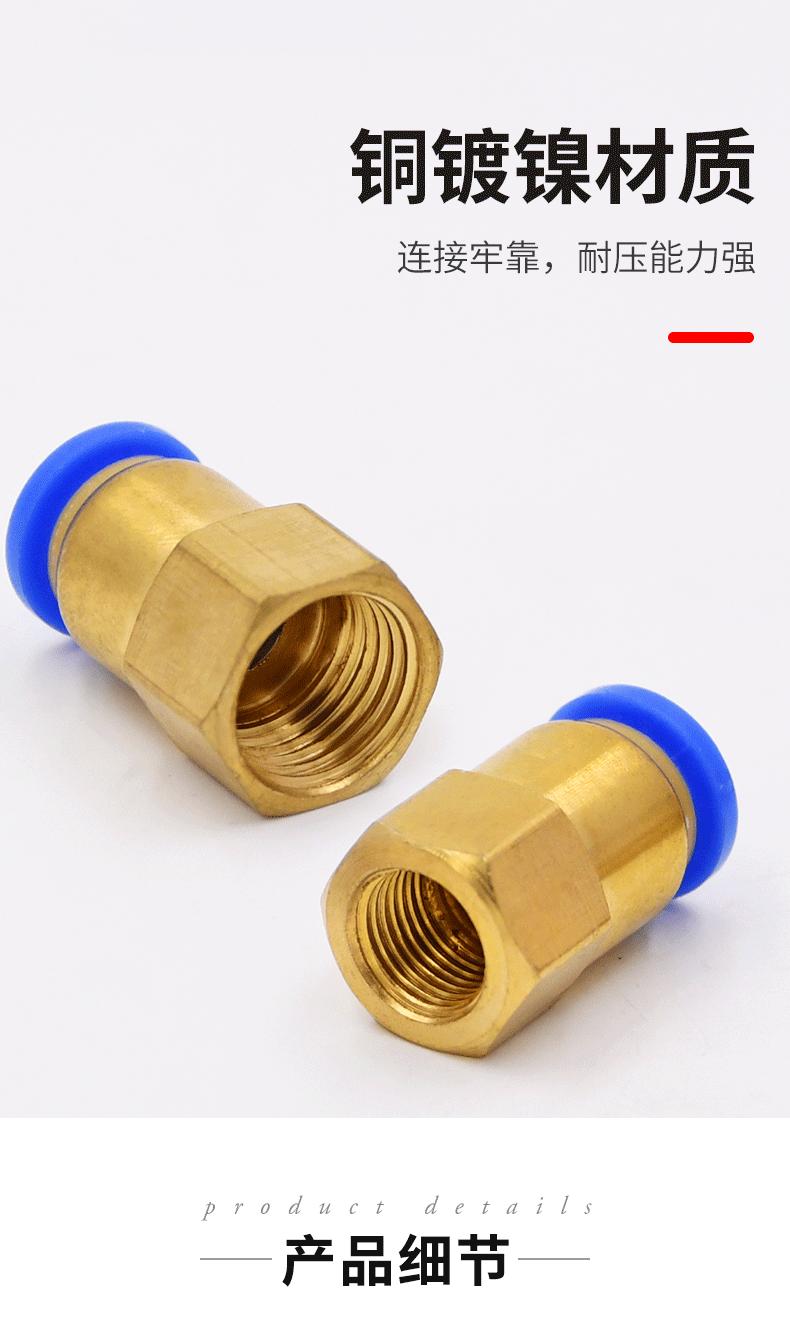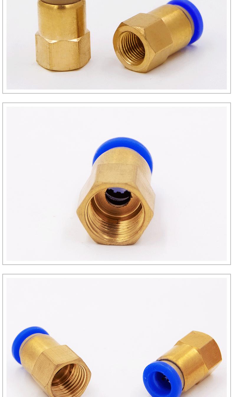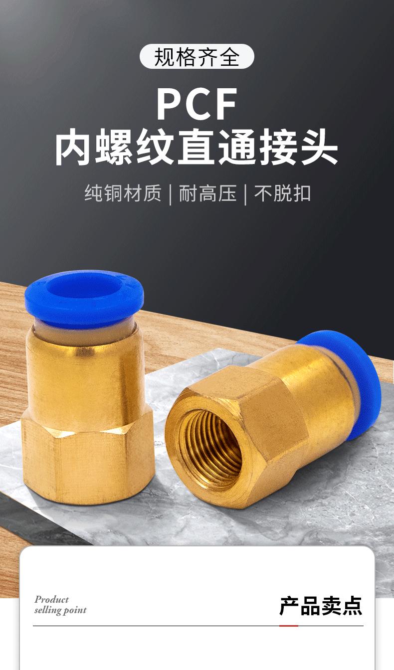 [Venta al por mayor de fabricantes de conectores neumáticos] Conector neumático de paso recto de latón de conexión rápida para manguera de aire de rosca interna PCF