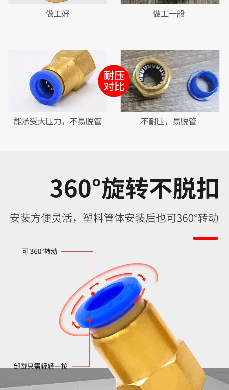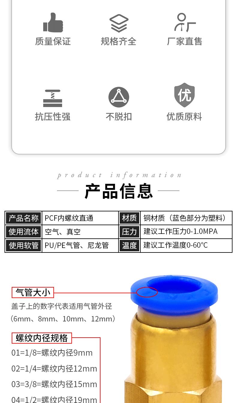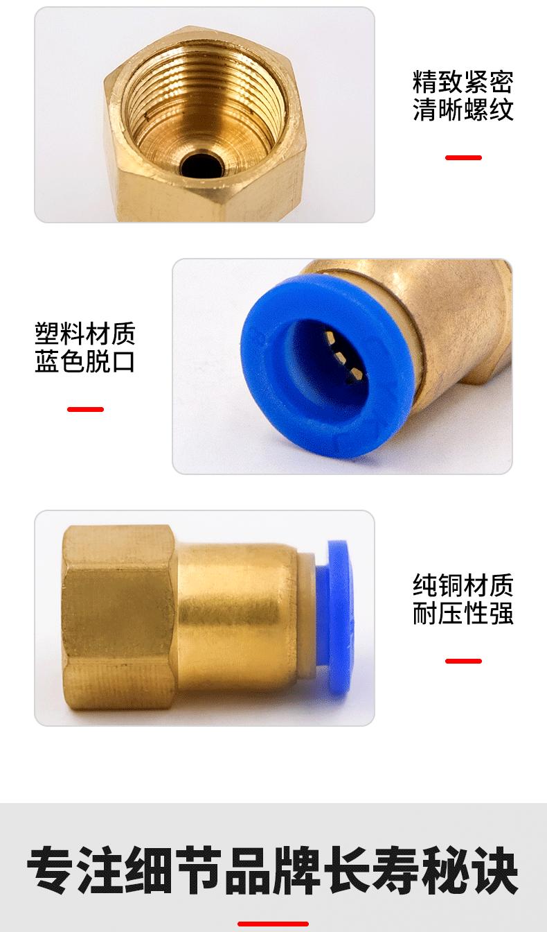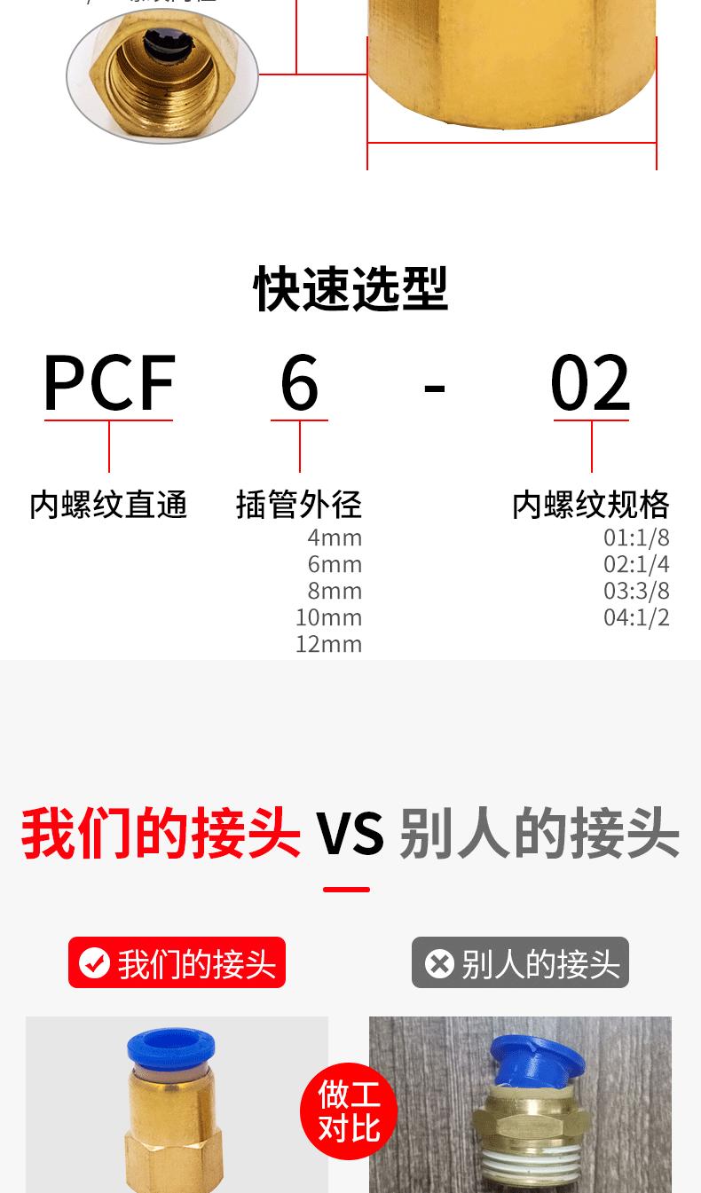 [Venta al por mayor de fabricantes de conectores neumáticos] Conector neumático de paso recto de latón de conexión rápida para manguera de aire de rosca interna PCF