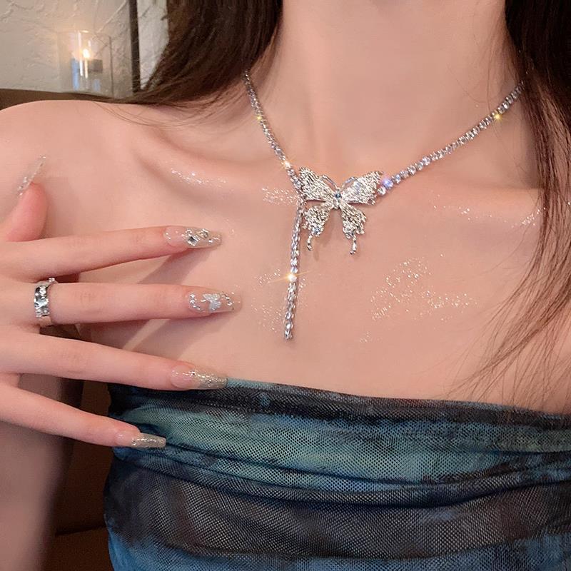 Collar de mariposa para mujer, diseño de nicho de diamantes de imitación de lujo ligero, nuevo y popular collar de cadena de clavícula de alta calidad de verano 2023