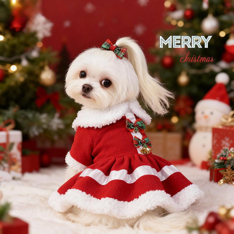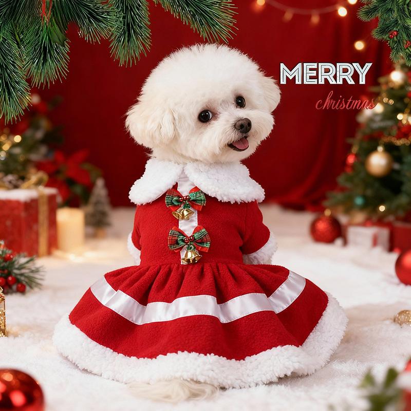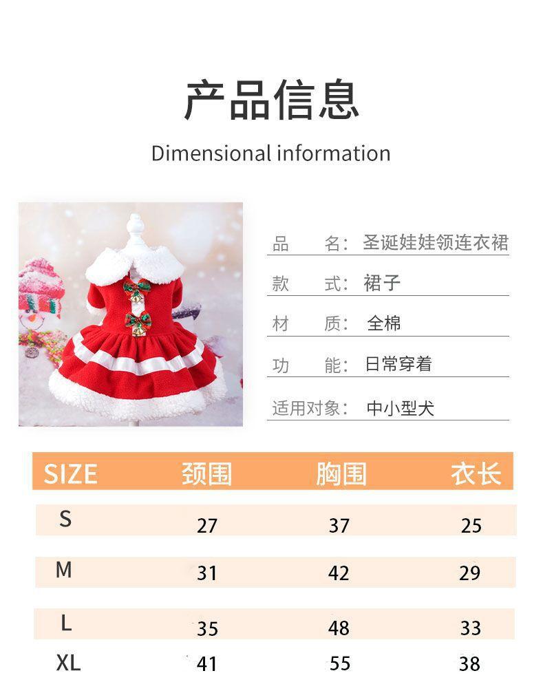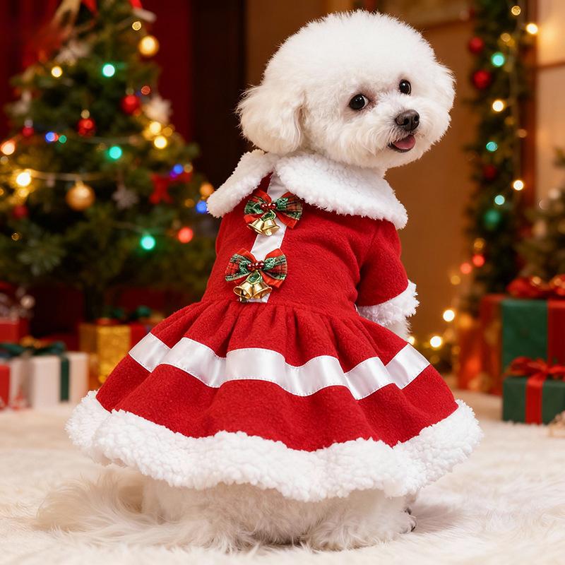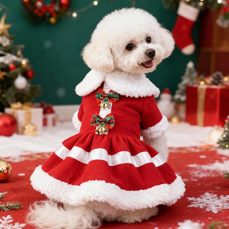 Ropa navideña para mascotas estilo Papá Noel rojo campana engrosado cuello de muñeca vestido exclusivamente para transfronterizo