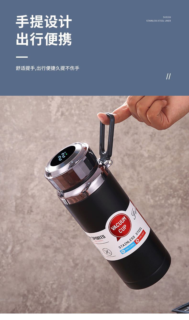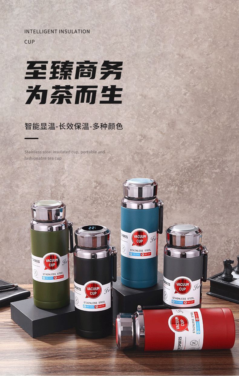 Termo de acero inoxidable 304, taza de paja de gran capacidad, botella de agua para viajes deportivos al aire libre, taza de agua para automóvil inteligente, venta al por mayor