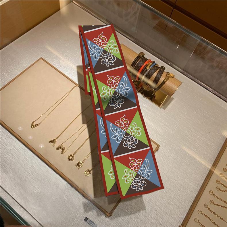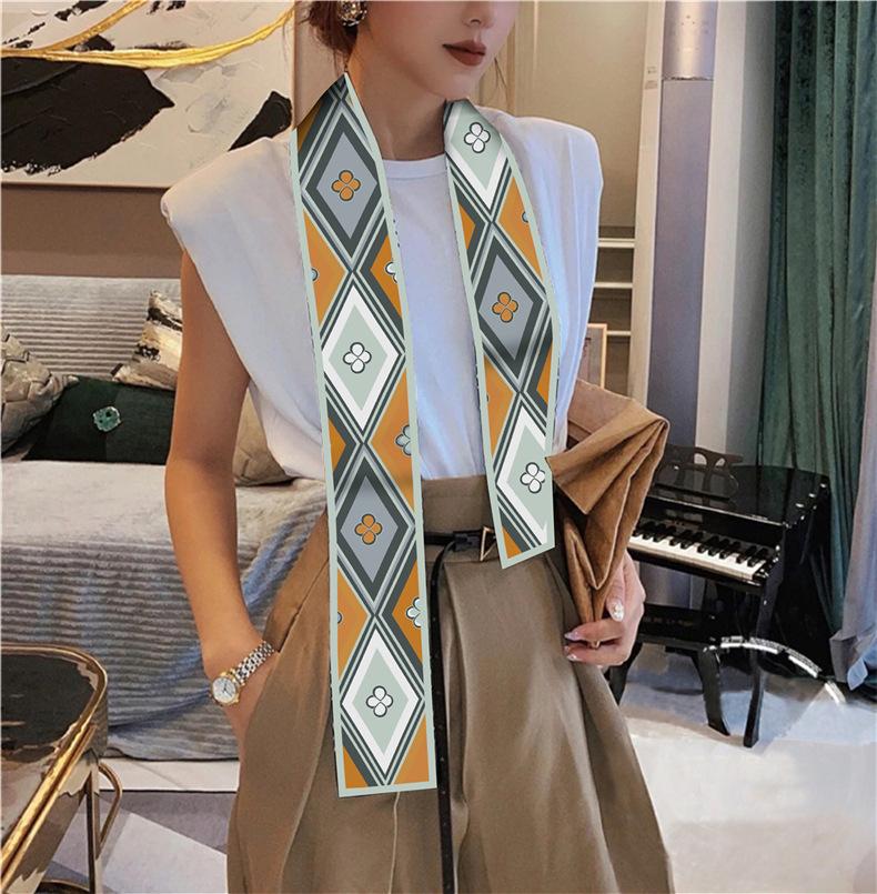 | Bufanda cuadrada geométrica de primavera y verano, nueva bufanda de seda para mujer, cinta para el cabello, accesorios para el cabello, bufanda con estampado de bolso, bufanda de seda de imitación al por mayor |
