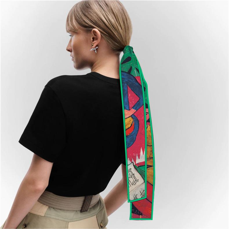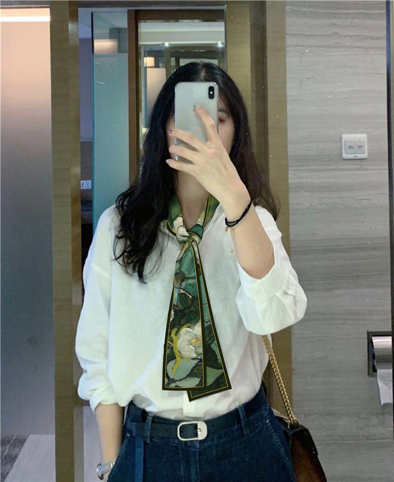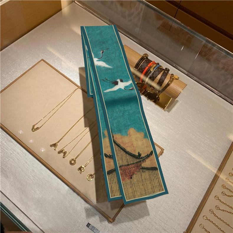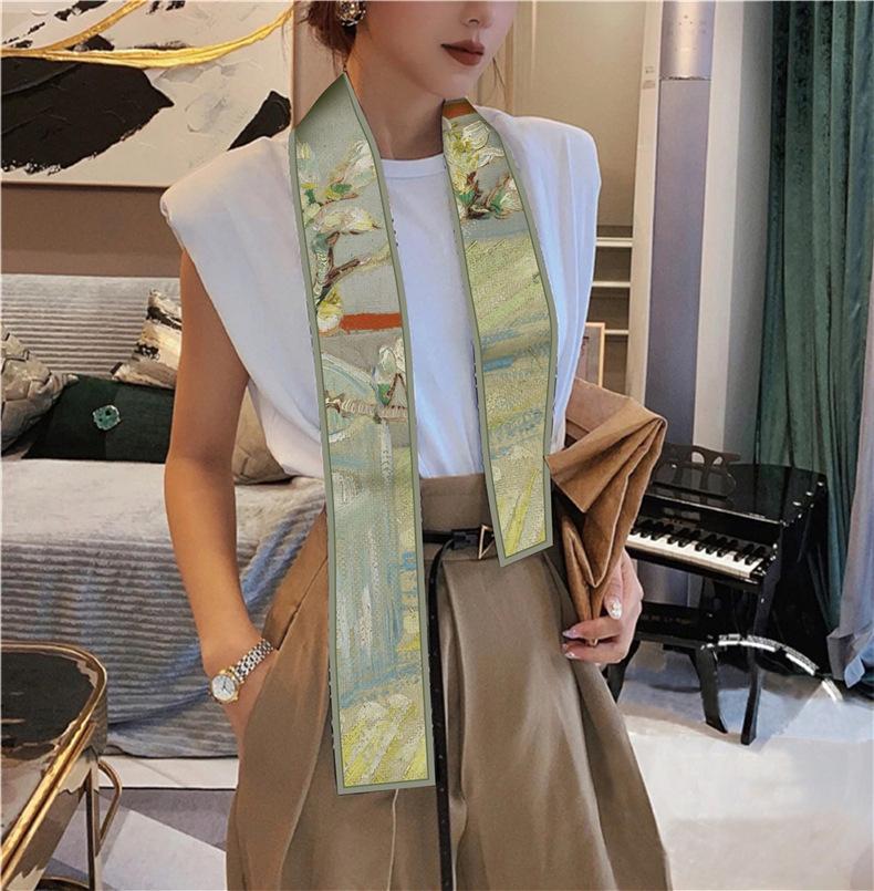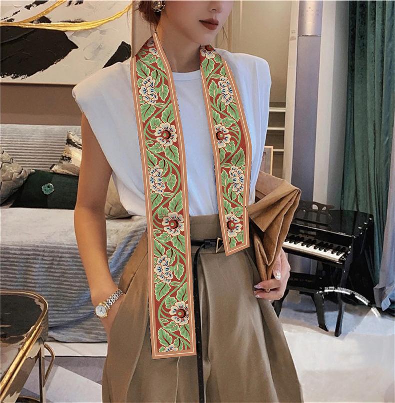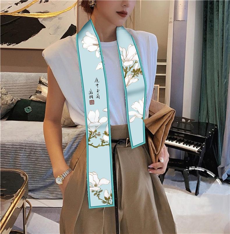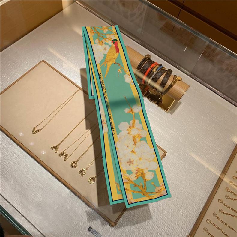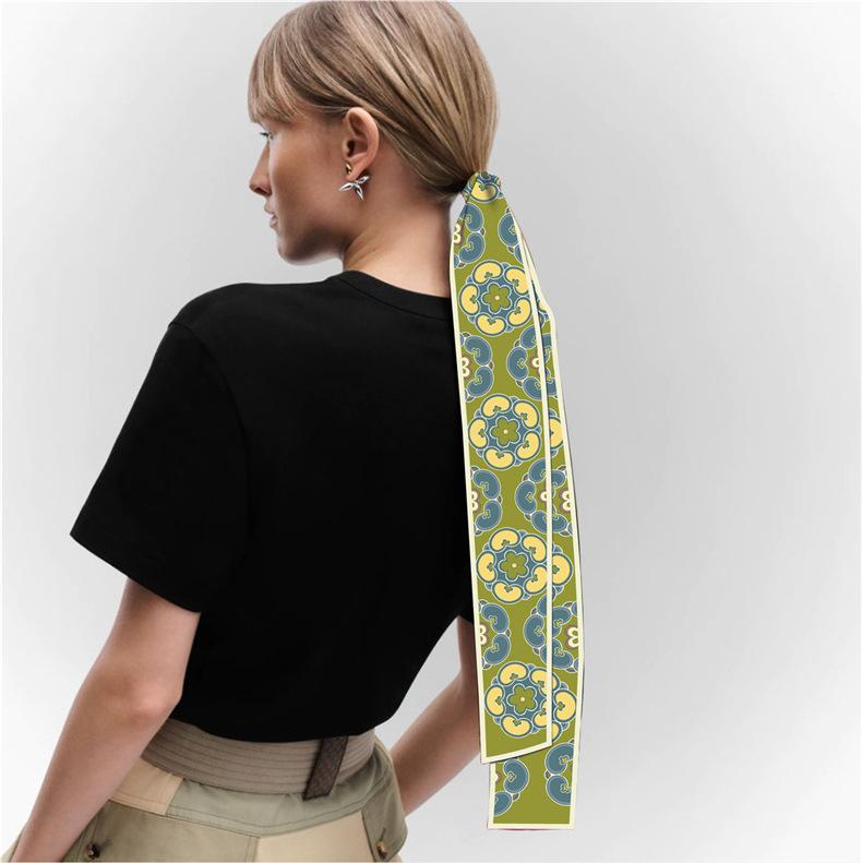| Bufanda larga de seda verde de primavera y verano 2022 para mujer, diadema decorativa a juego para camisa, bufanda profesional, diadema retro, corbata y bolso. |