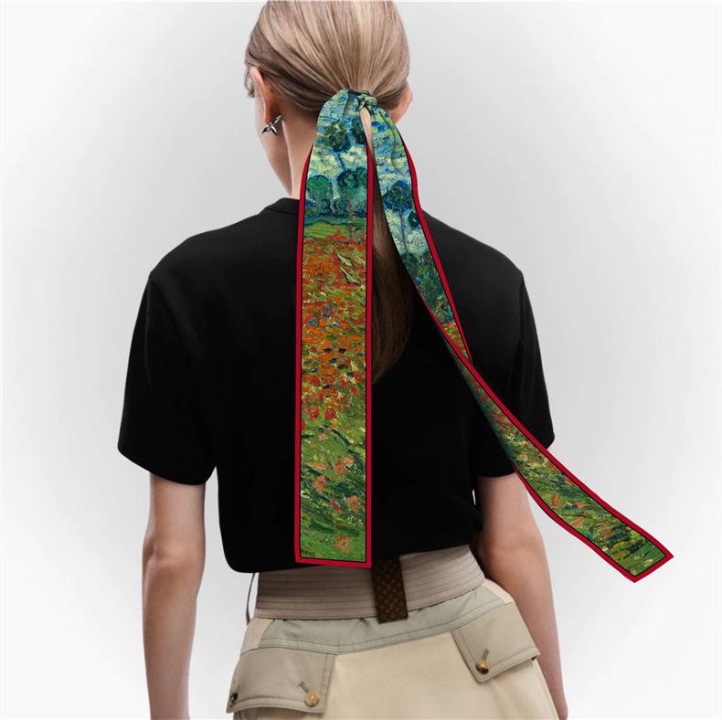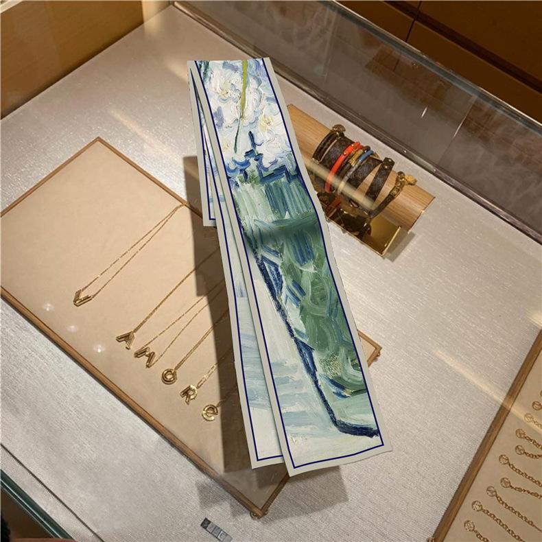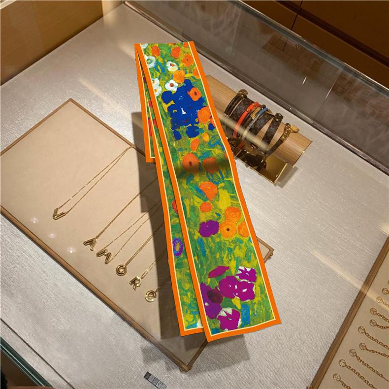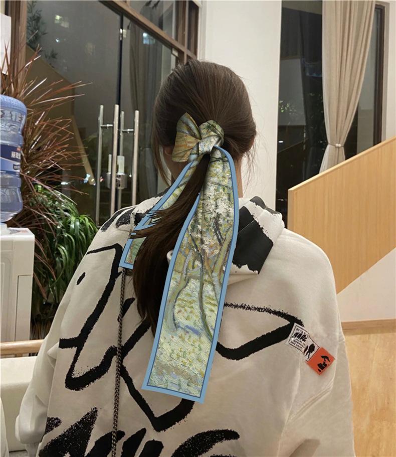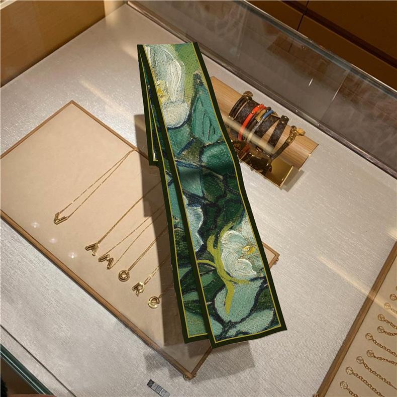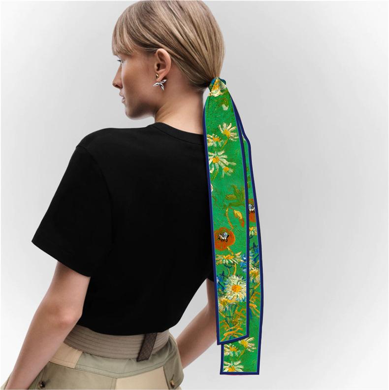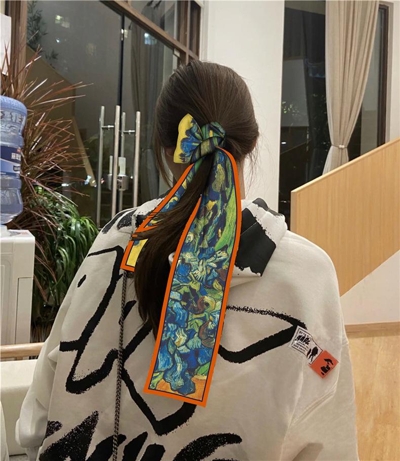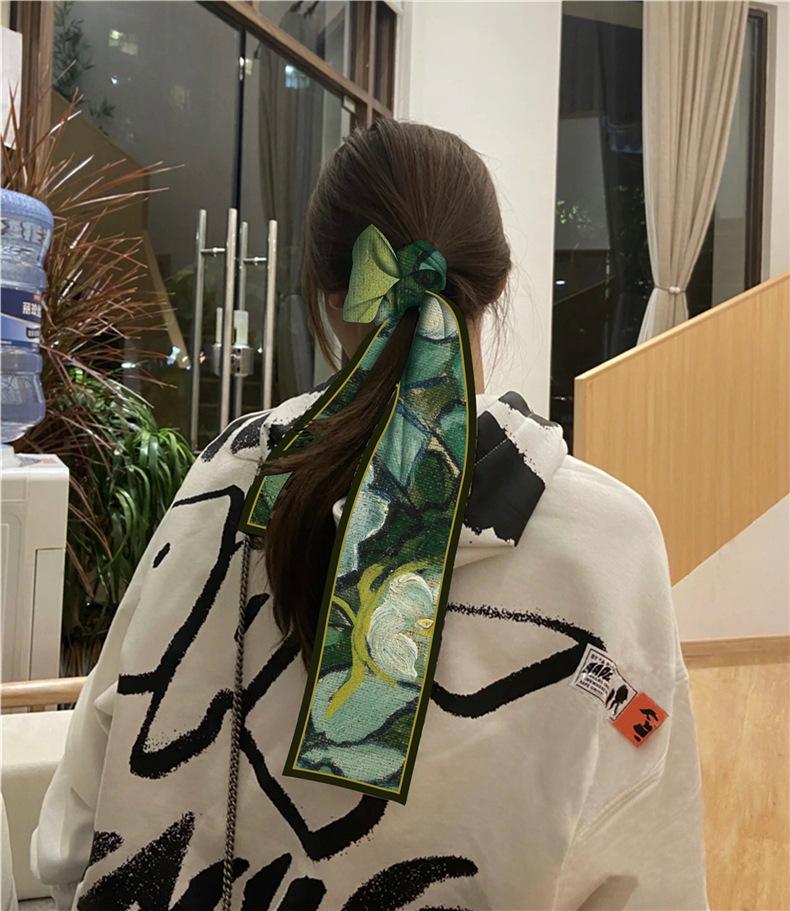 | Bufanda de cinta estilo pintura al óleo, versión coreana, fina y estrecha, larga, de imitación de seda, banda para el cabello decorativa de moda femenina, venta al por mayor |