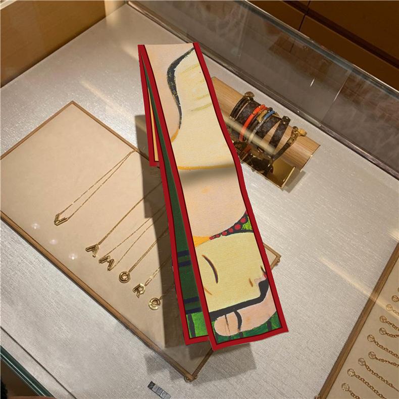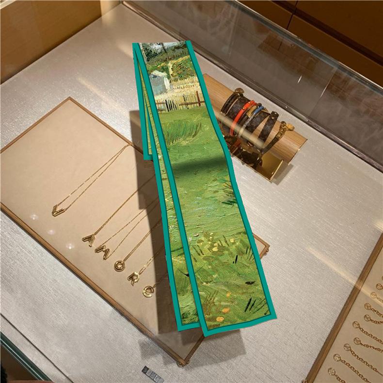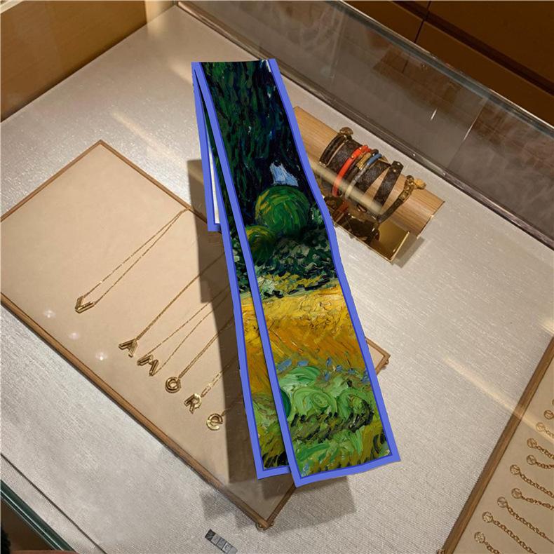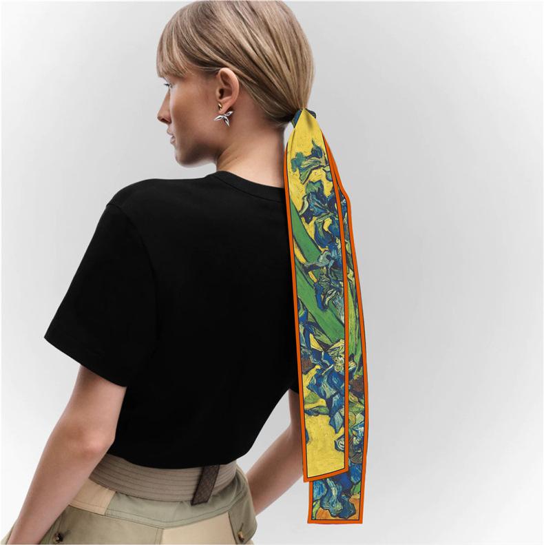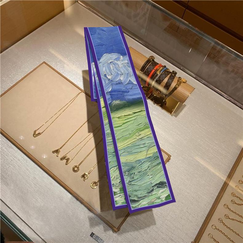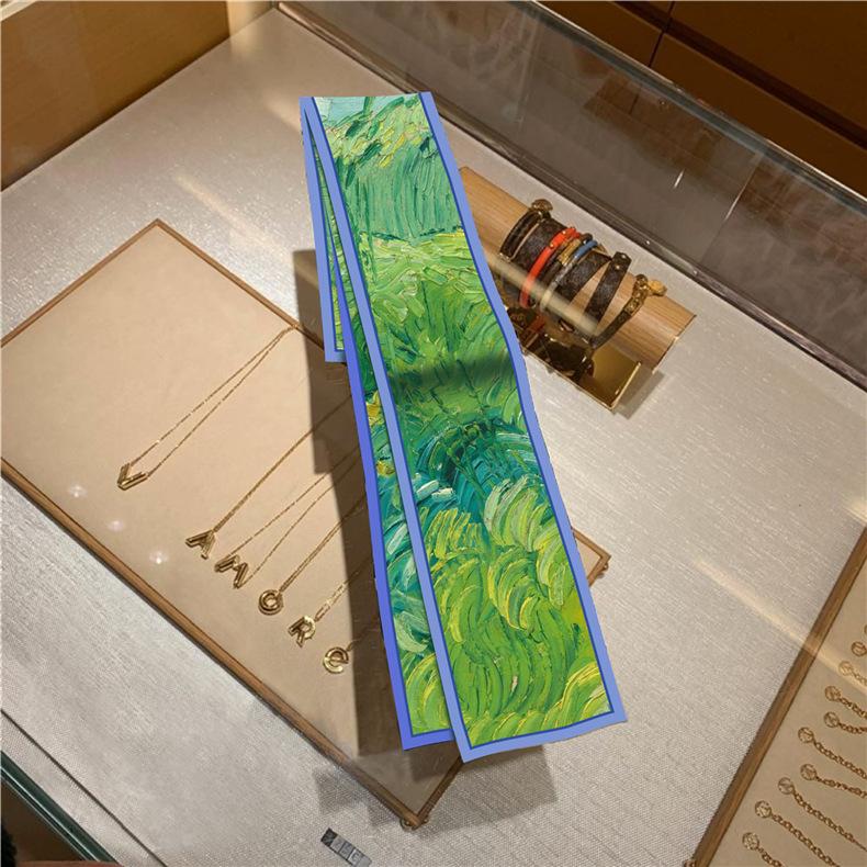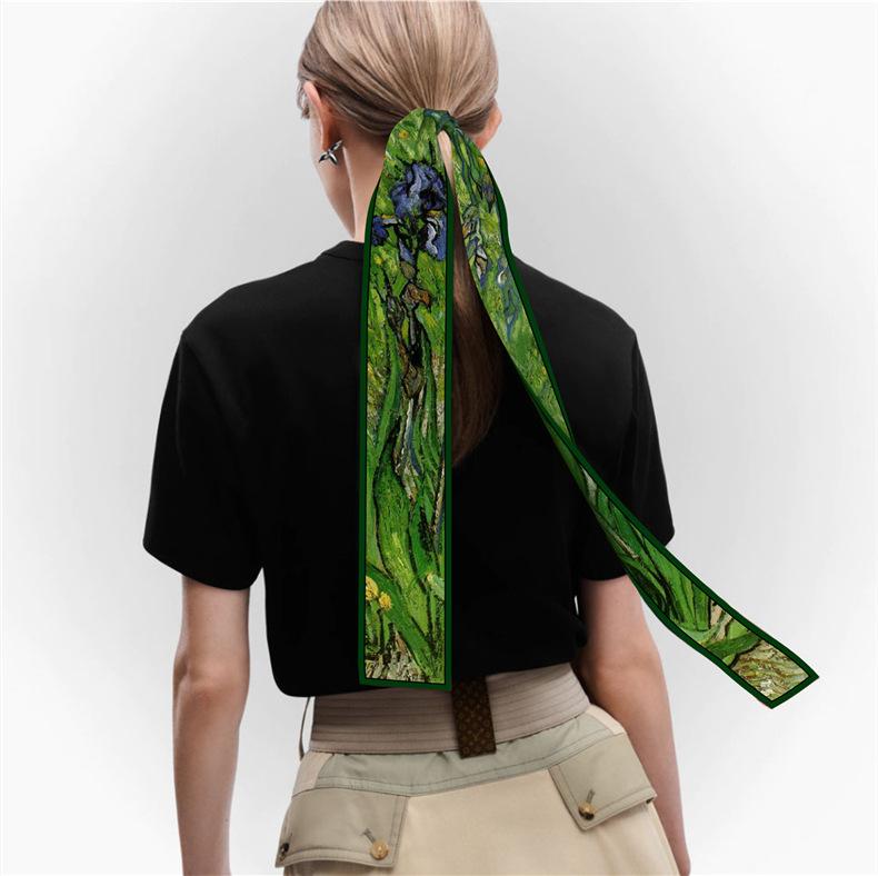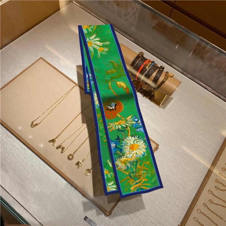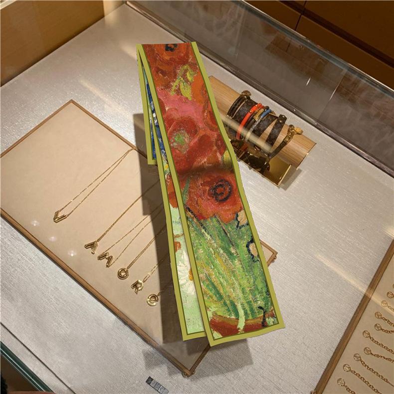 | Bufanda de cinta estilo pintura al óleo, versión coreana, fina y estrecha, larga, de imitación de seda, banda para el cabello decorativa de moda femenina, venta al por mayor |